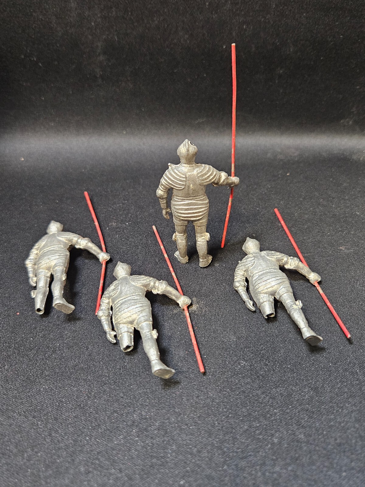 4 Vintage Lead Toy British Medieval Armored Pikemen/Polemen with Red Poles