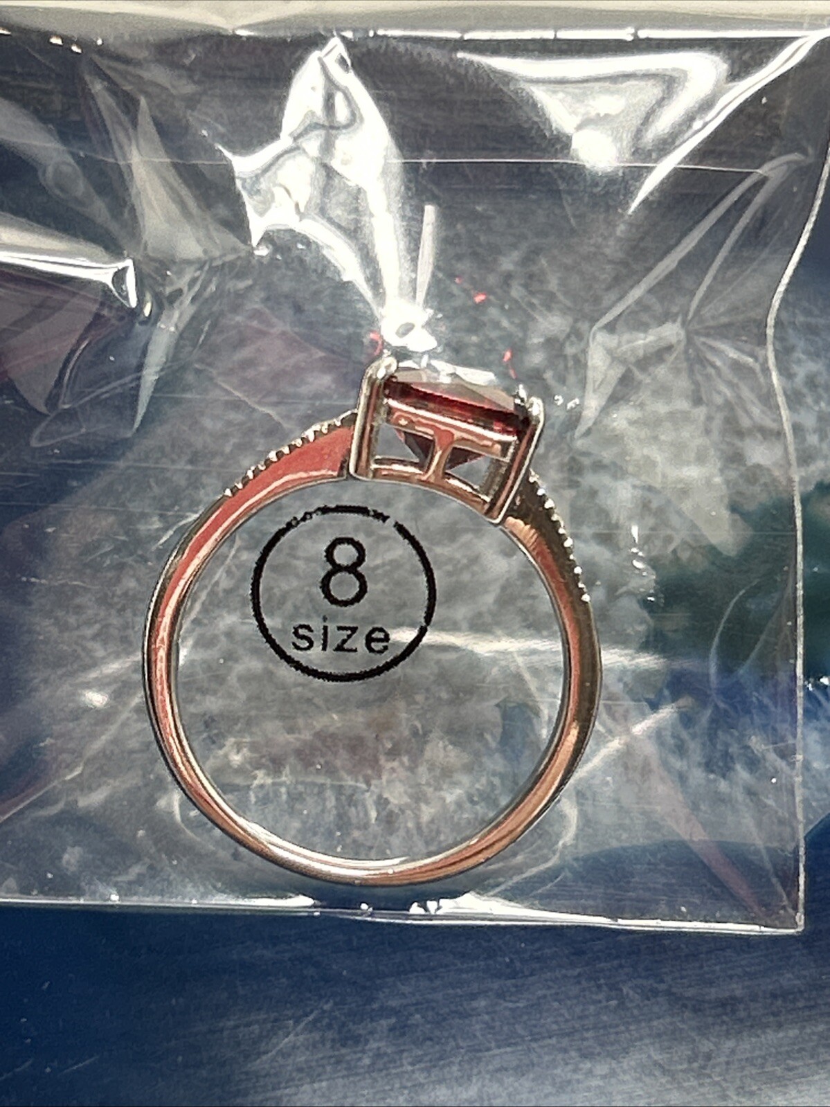 925 Sterling Silver Octagon Natural Garnet Ring Women Boho Gemstone Ring NEW