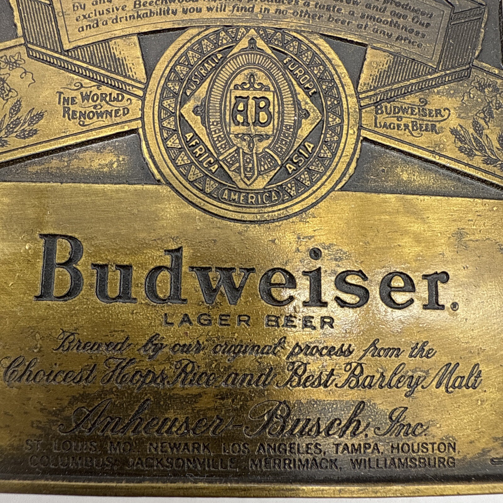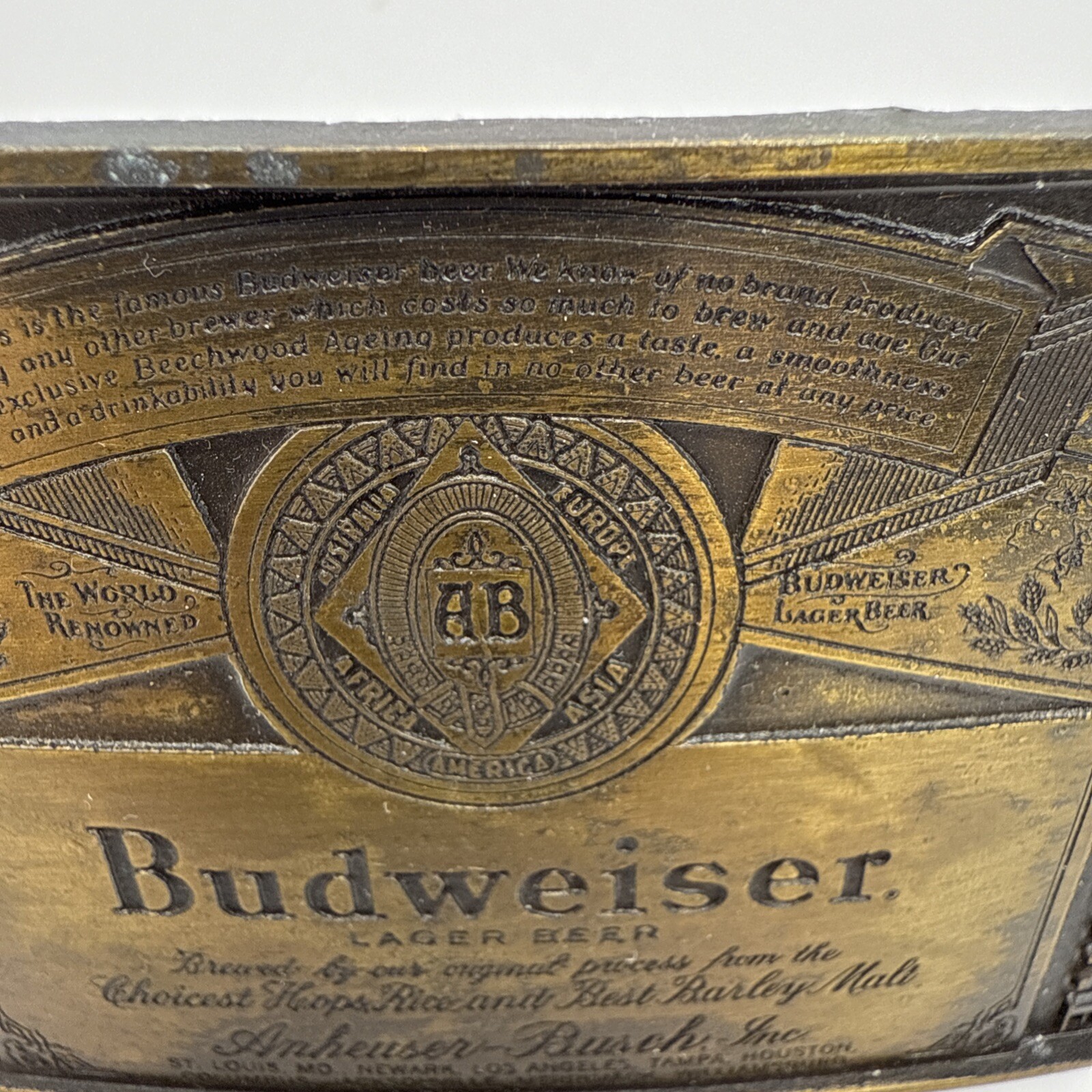 Vintage Budweiser Beer Anheuser Busch Metal Brass Belt Buckle 3.25 x 2.25