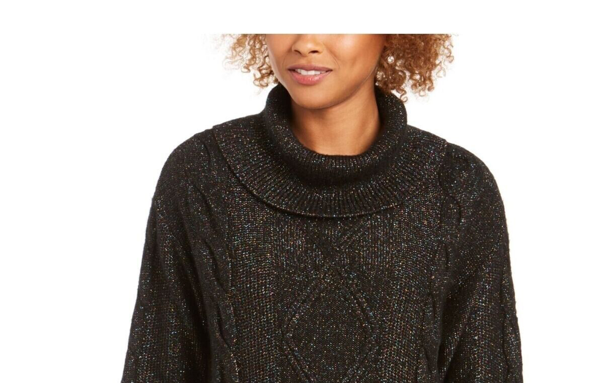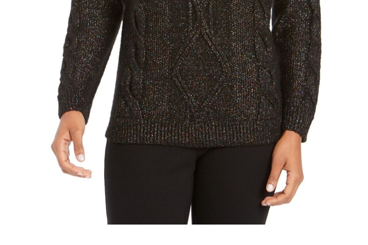 MSRP 80 Charter Club Cowl-Neck Cable-Knit Glitter Sweater Black Speckle, M