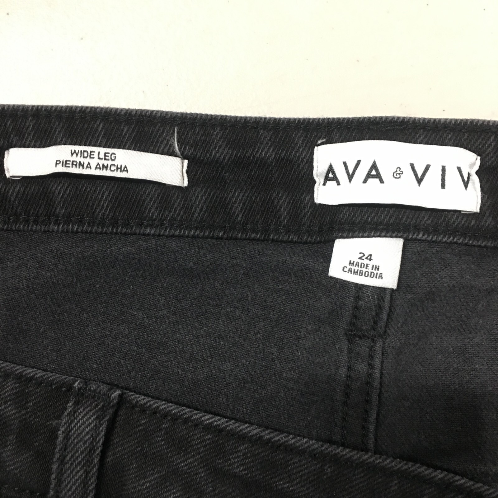 как выглядит Ava Viv Relaxed Wide-Leg Jeans Womens 24R Black Denim High Rise Stretch NEW фото