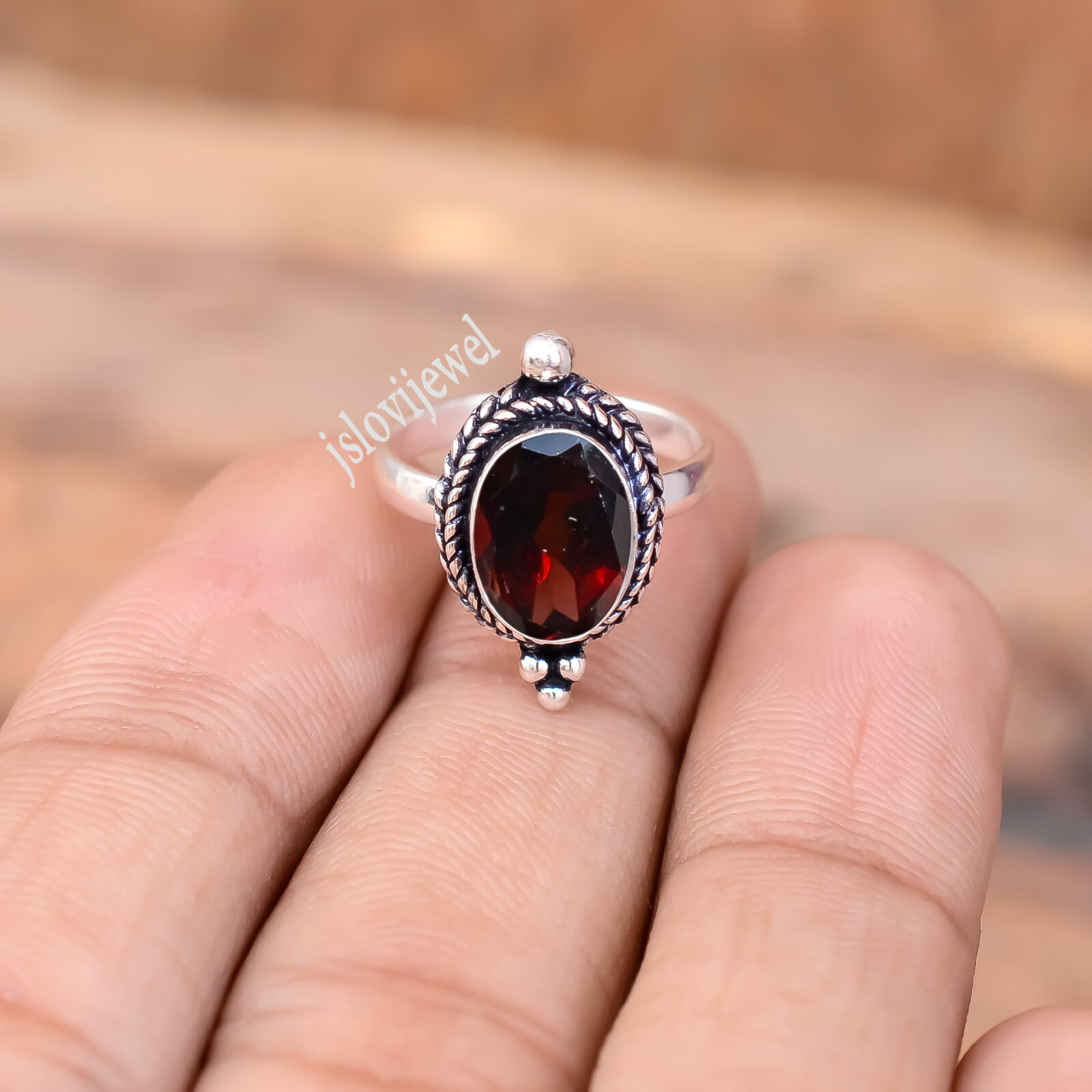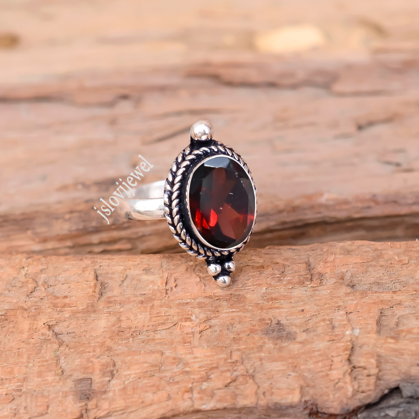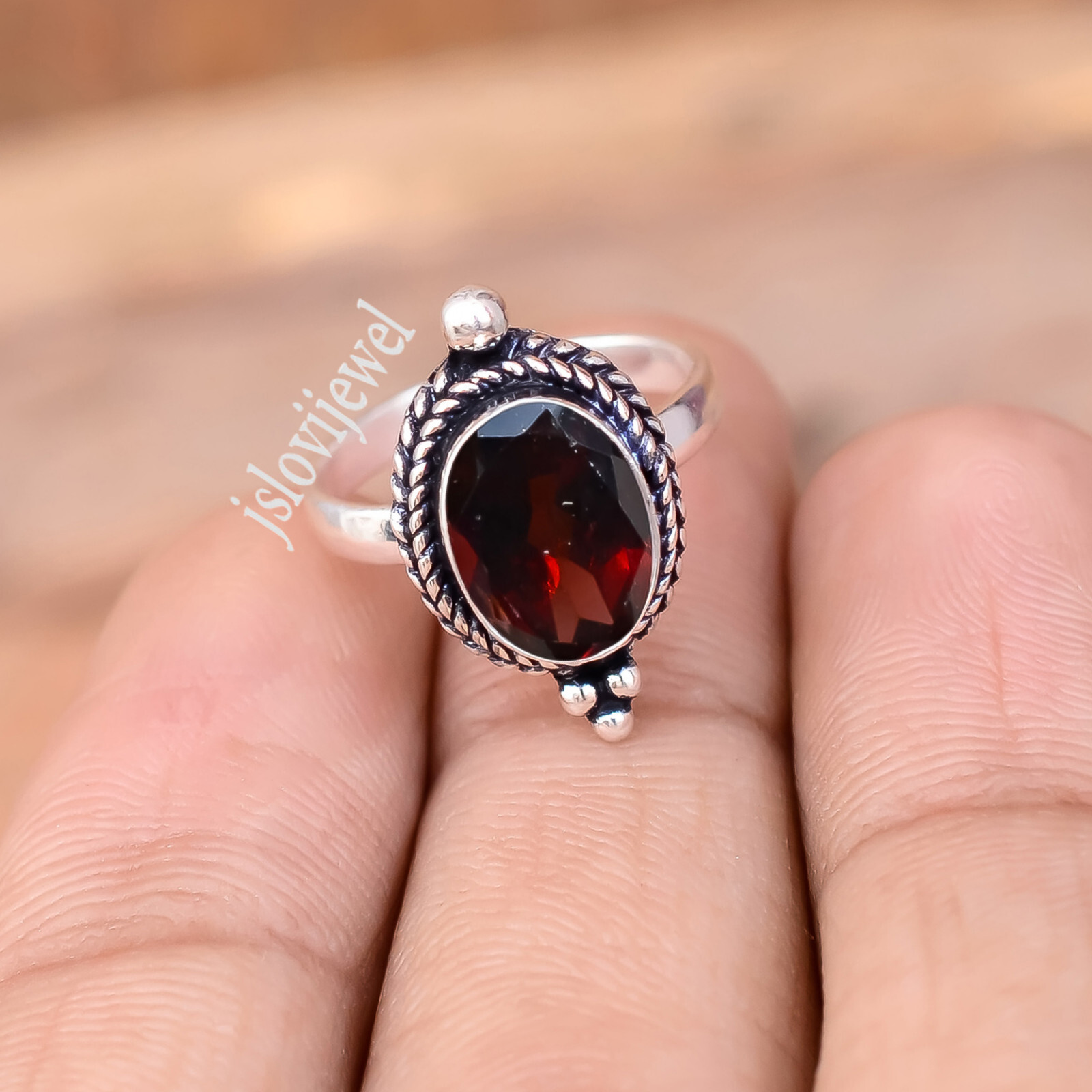 Red Faceted Garnet Gemstone 925 Sterling Silver Ring For One Person Gift Jewelry