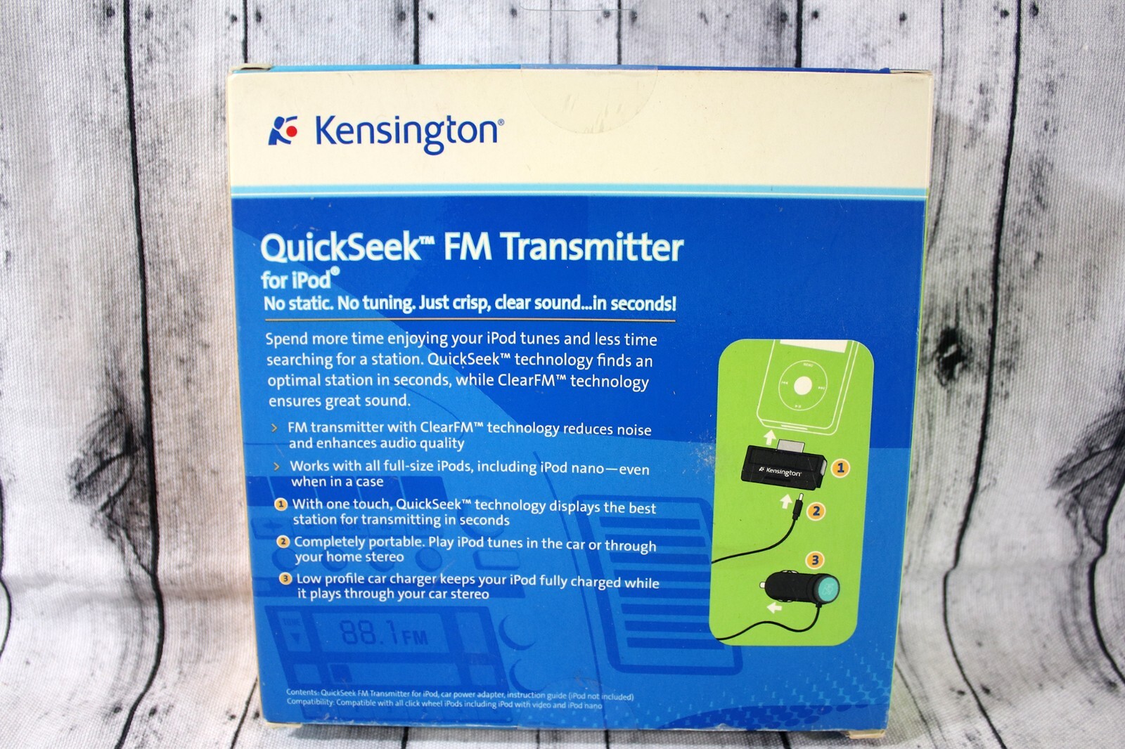 Kensington QuickSeek FM Transmitter/Auto Charger for IPod Black K33384US New