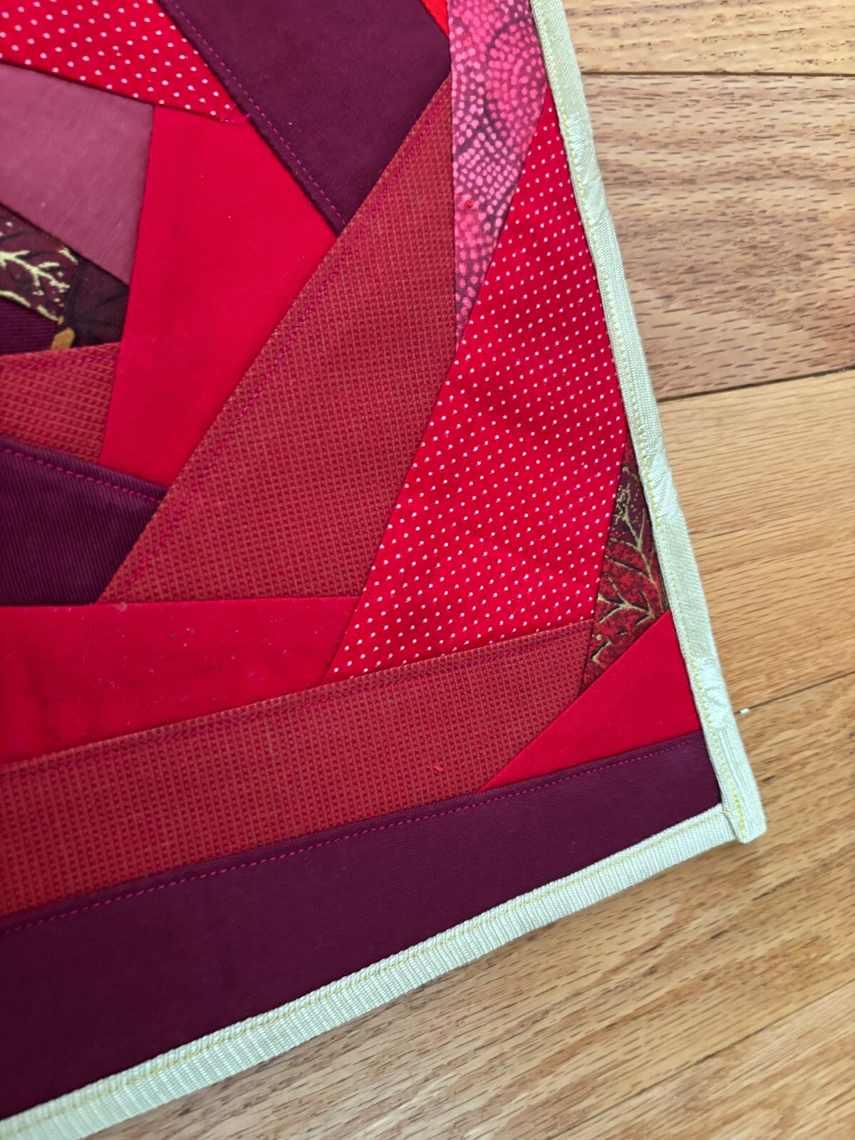 Quilted Table Topper red as a flower 12 x 12.5, goldish liner on the back, new