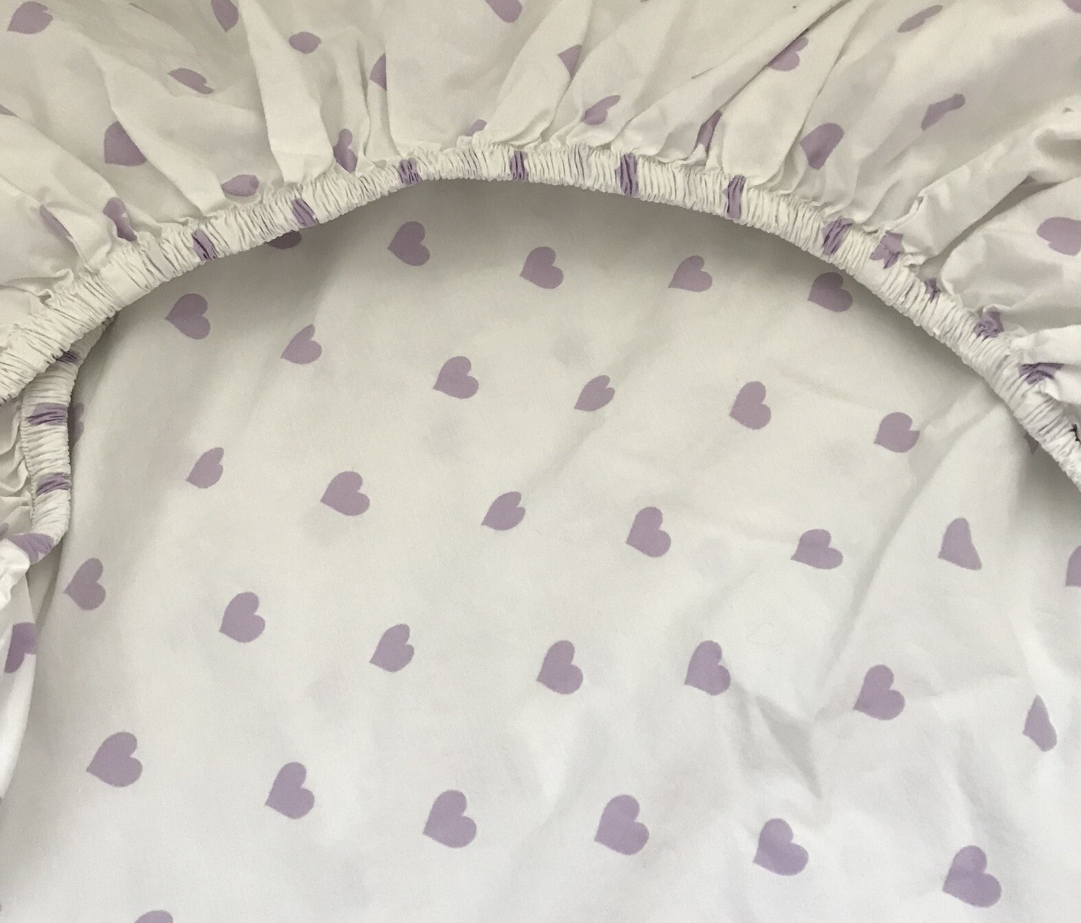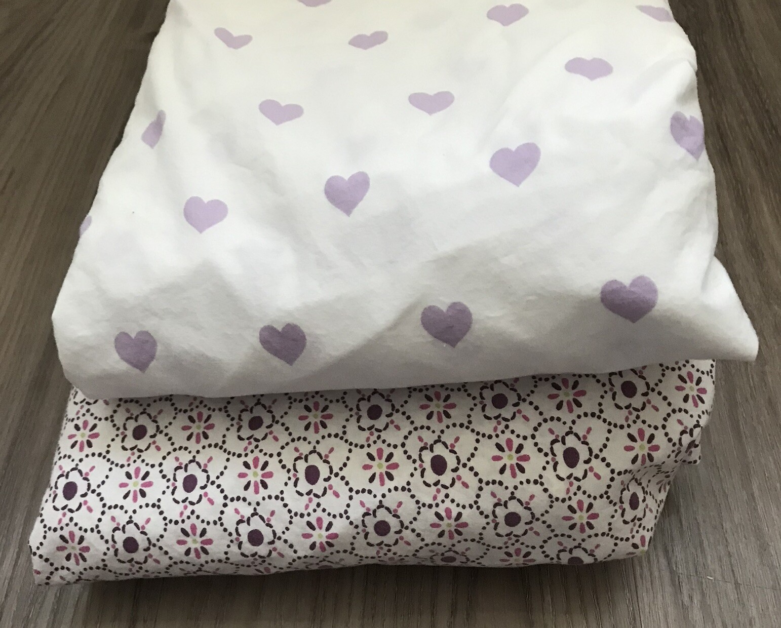 Pottery Barn Kids Crib Sheet Lot Of 2 Purple Hearts Dots Flowers Organic Cotton