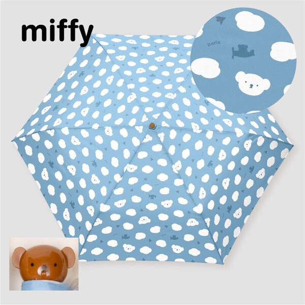 Miffy Folding Umbrella Face Handle Blue Contrail Boris Cloud Kawaii Japan New