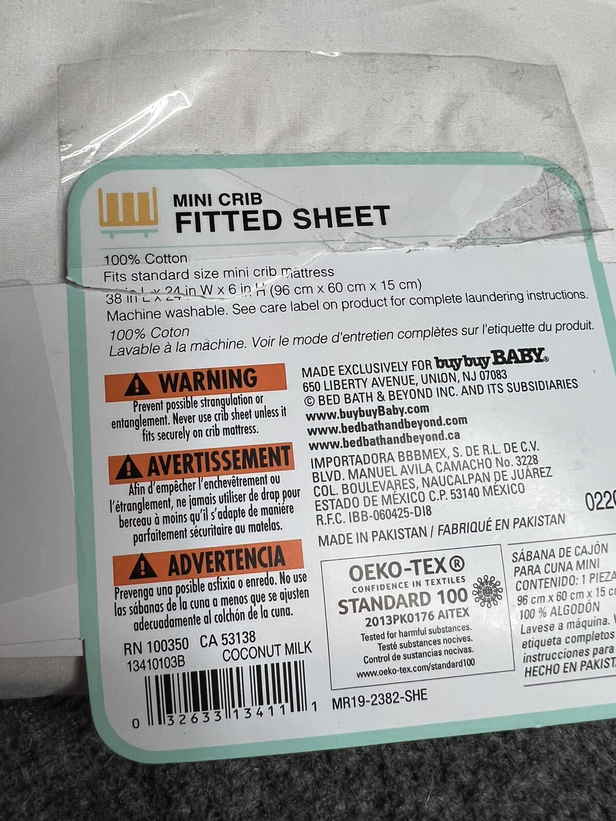 как выглядит Marmalade Woven Cotton Fitted Mini Crib Fitted Sheet in Ivory Coconut Milk NEW фото