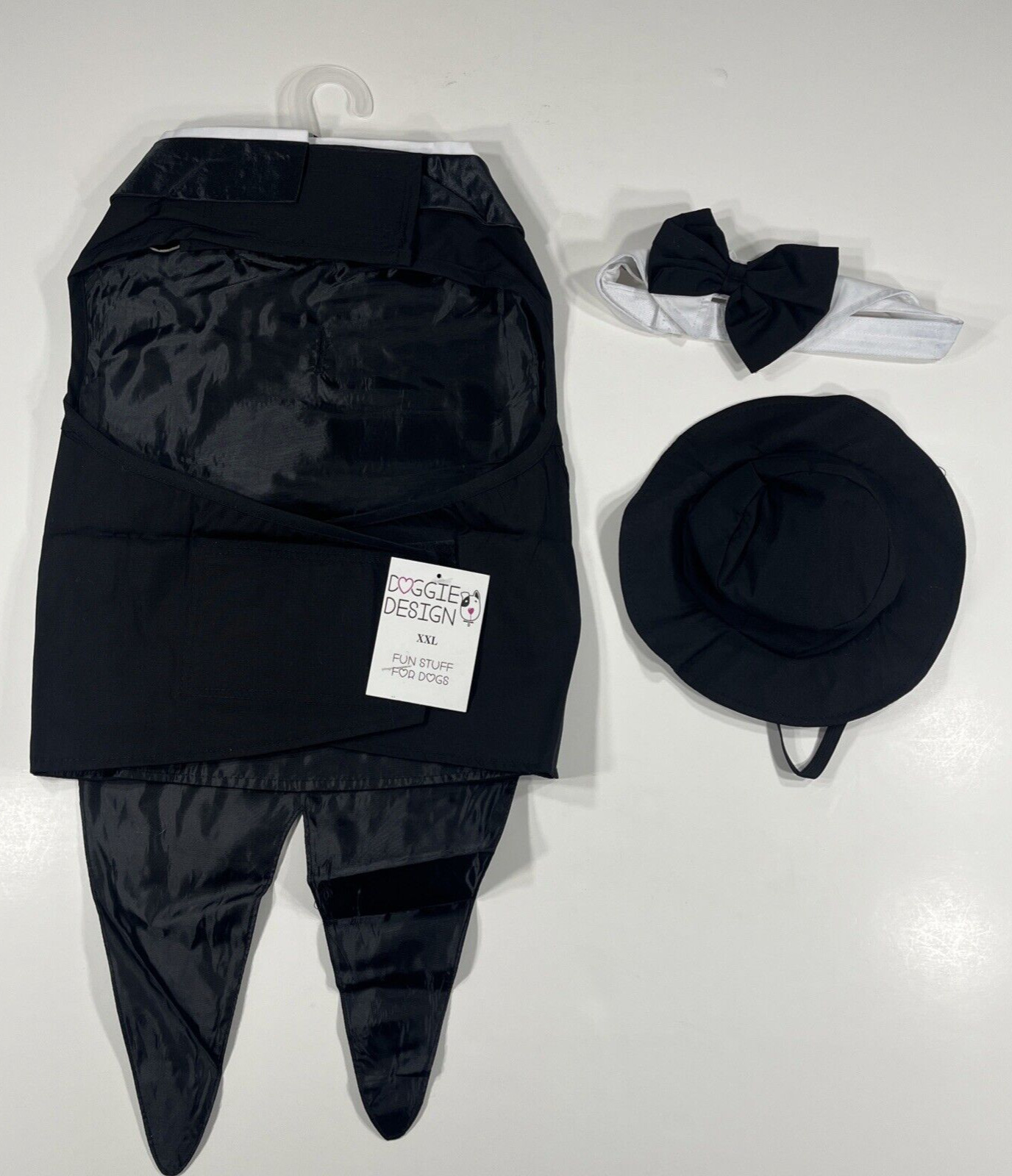 Doggie Design XXL Dog Tuxedo w/Formal Tails, Hat Bowtie - Black - NEW
