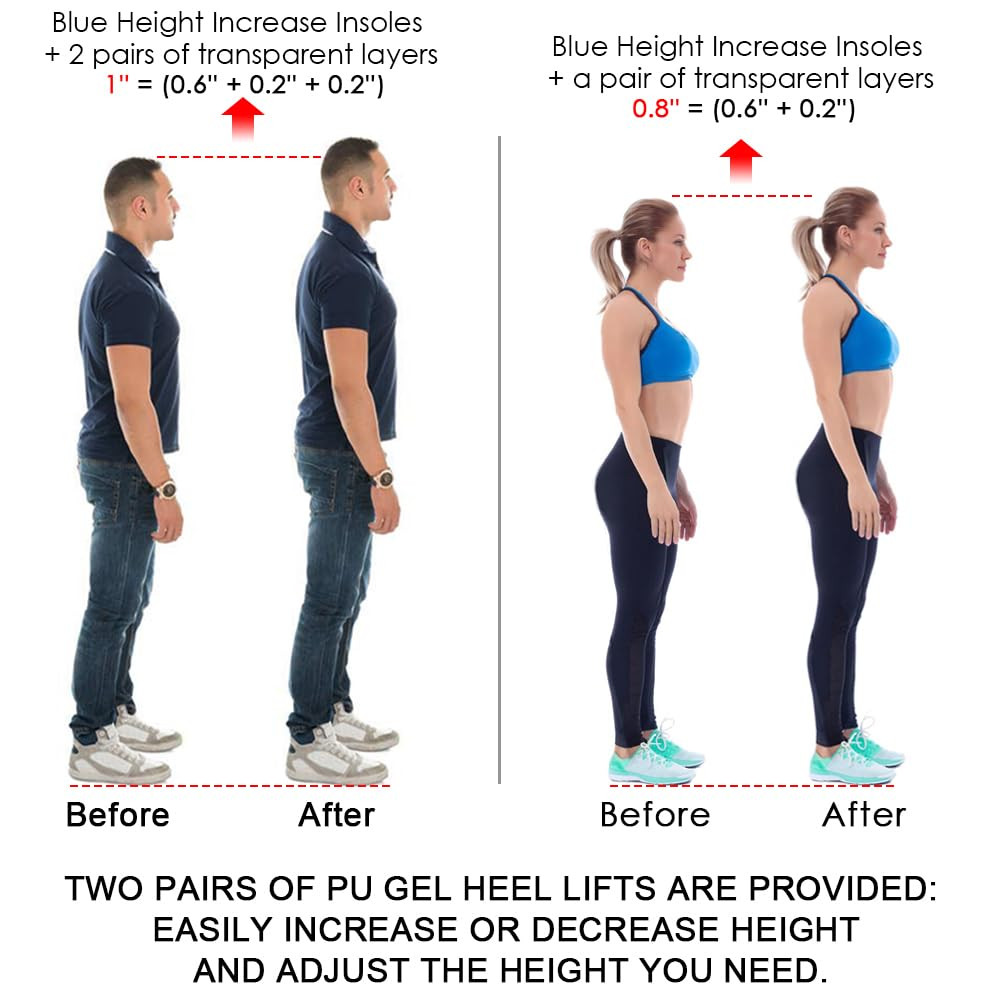 3-Layer Adjustable Height Increase Insoles, 3/4 Length Shock Absorption Cushi...