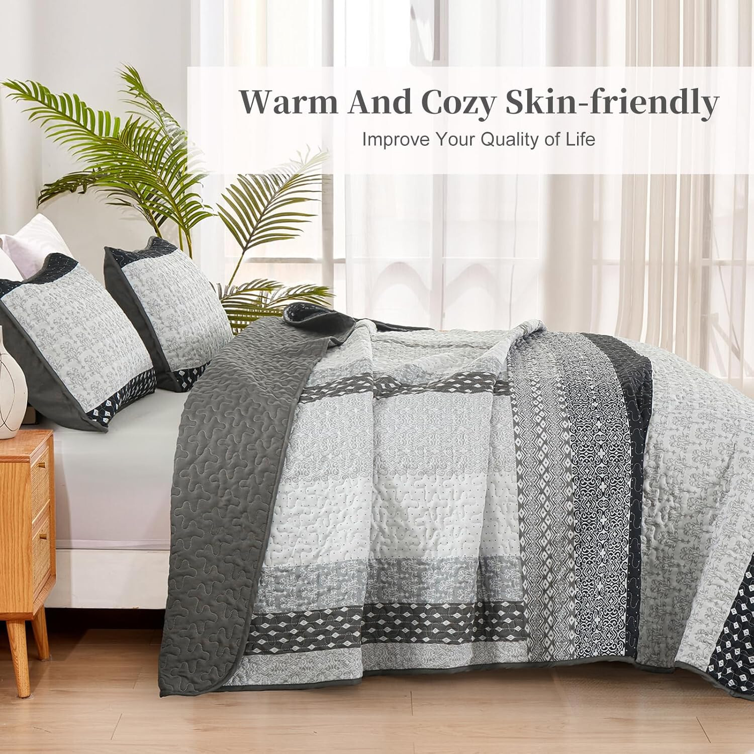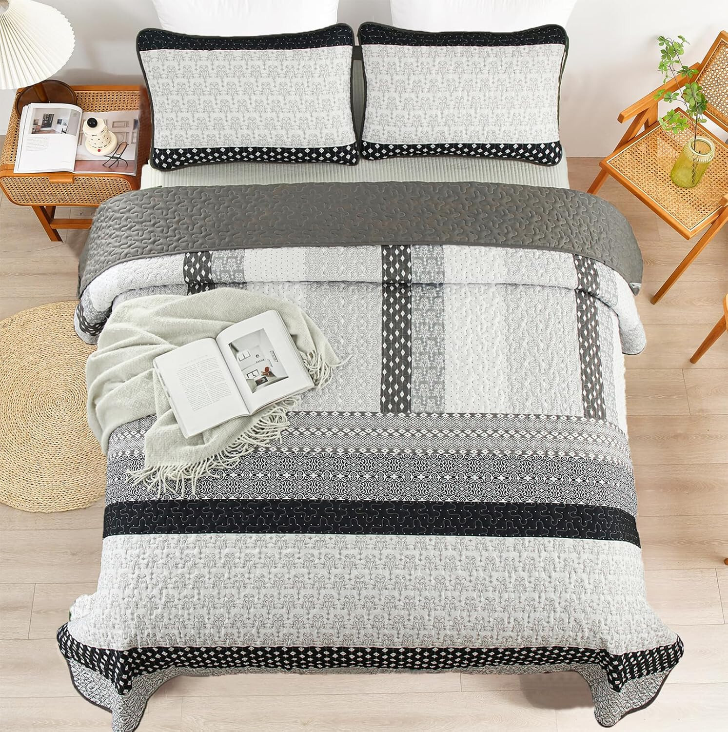 WONGS BEDDING Bohemian Stripe Bedspread Sets Queen/King Lightweight Microfiber