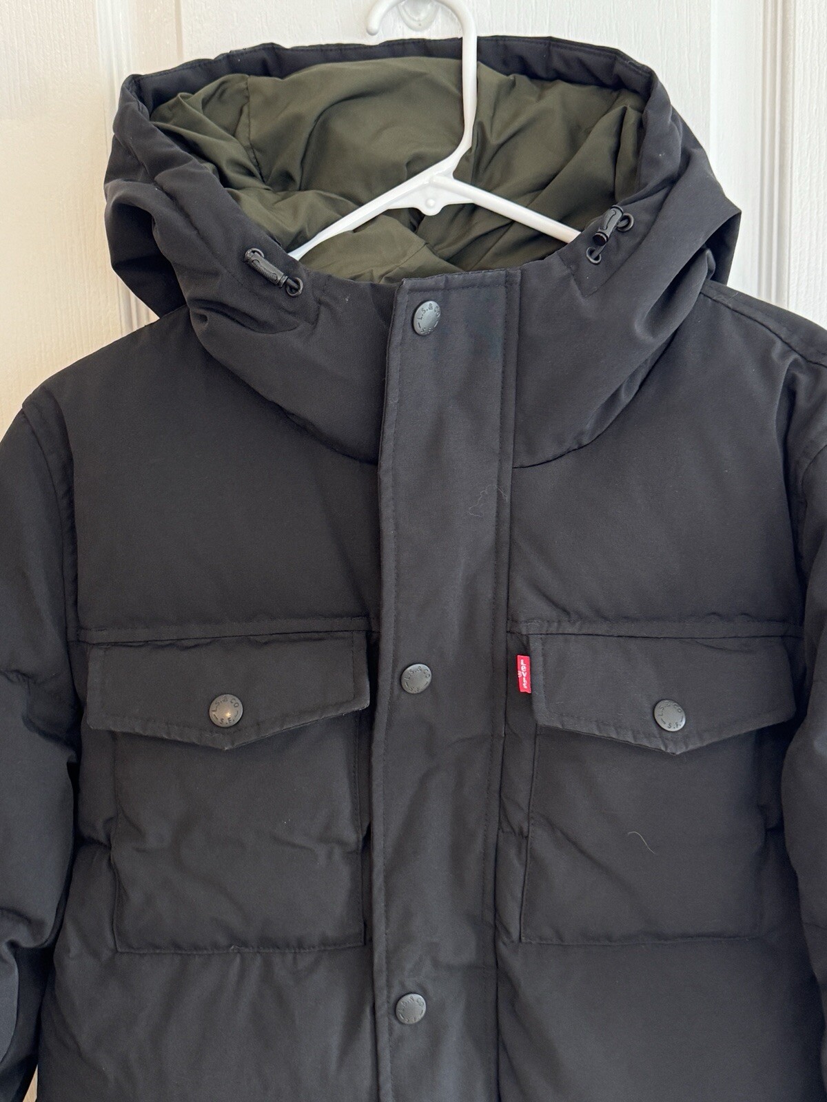 как выглядит Levis Mens Arctic Cloth Quilted Parka Jacket - Black Green XS фото