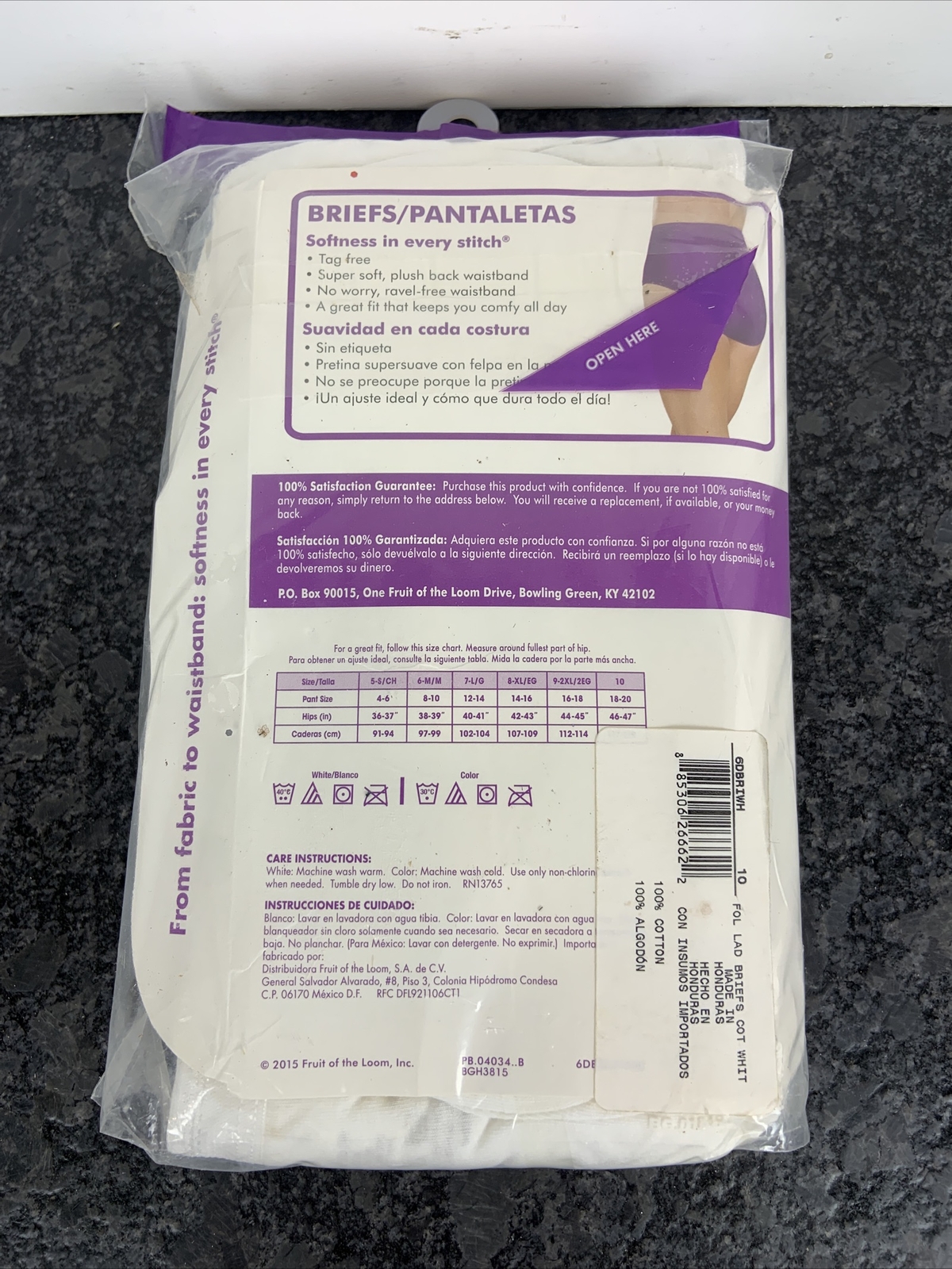 как выглядит Fruit of the Loom 10/3X Cotton Tag Free White Briefs 6 Pack New In Package фото