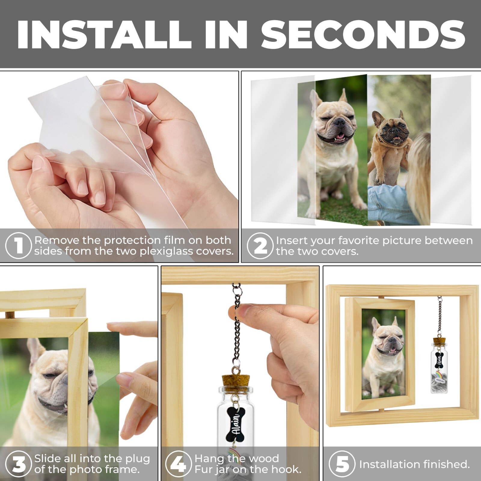Pet Memorial Rotating Wooden Picture Frame 6x4 Photo Natural Pet Hair Keepsake