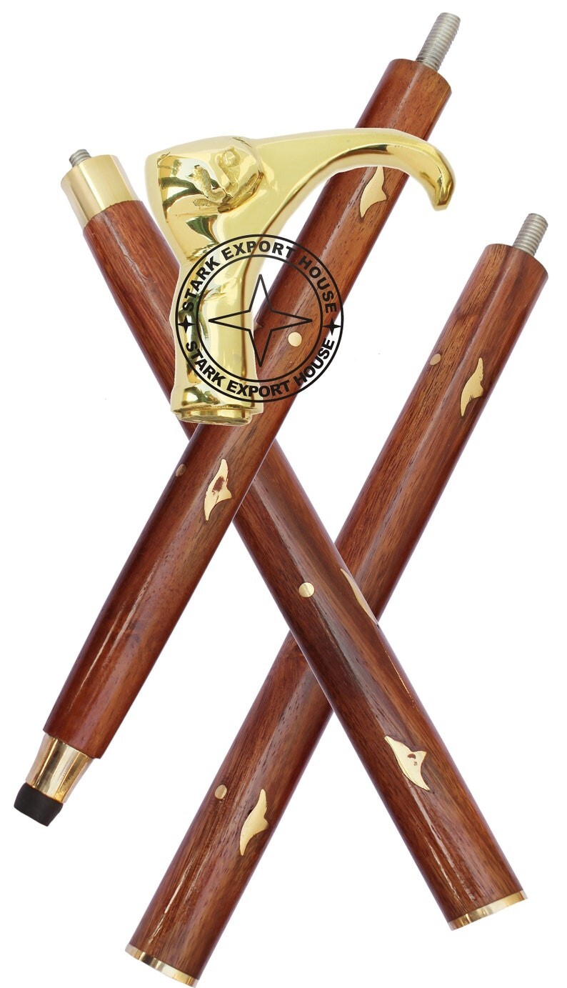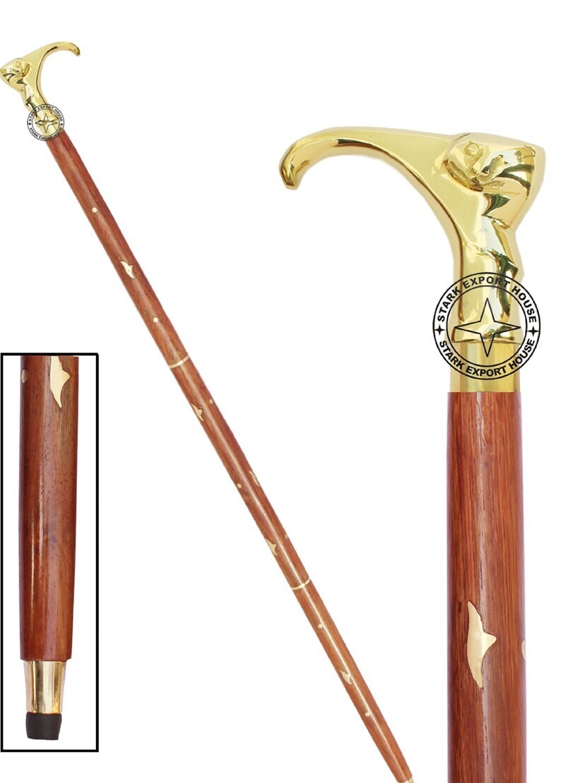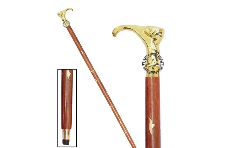 Brass Walking Cane Wooden Stick Rosewood Cute Cat Vintage Style Brass Handle New