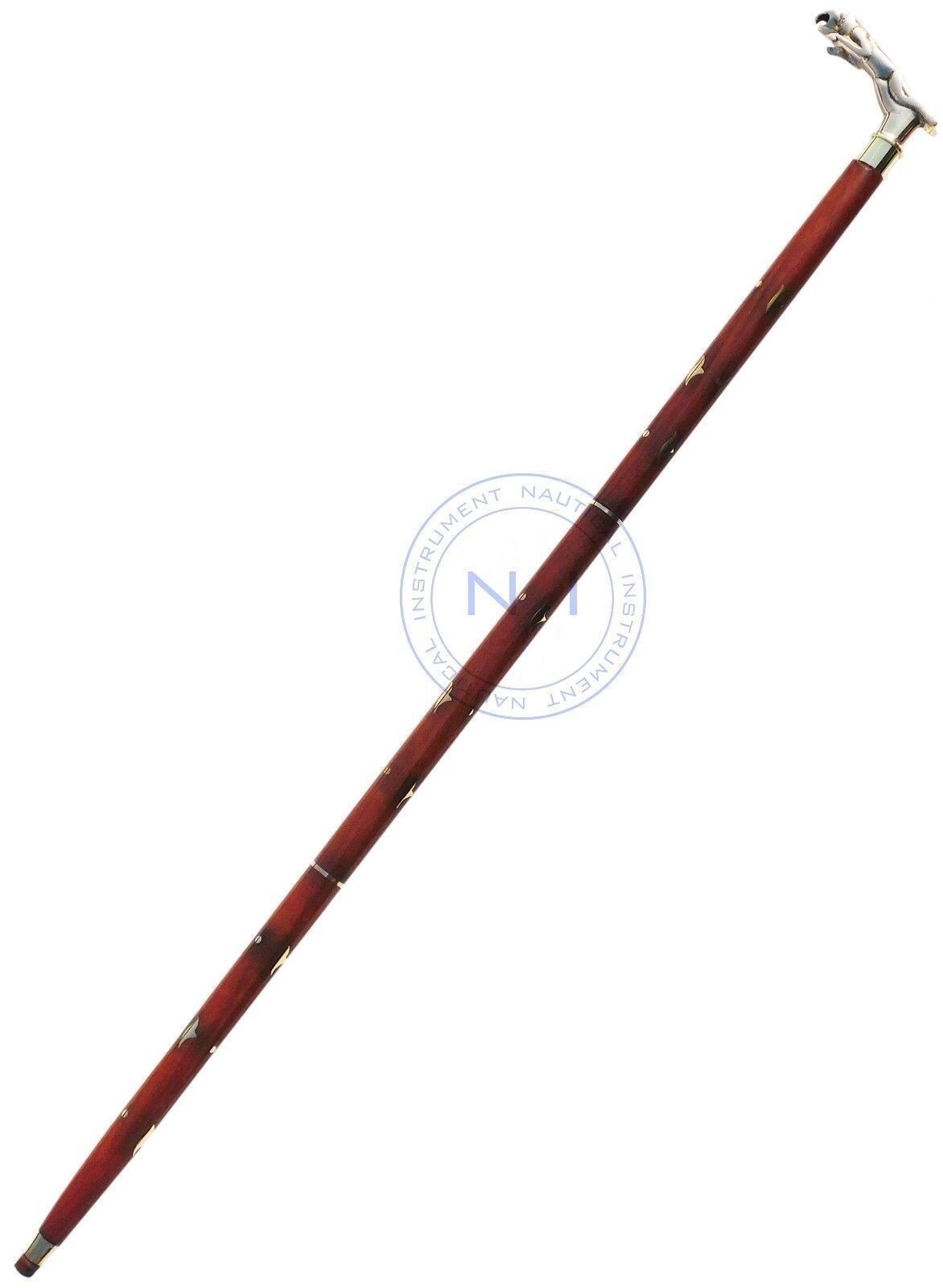Nautical brass Golden Jaguar handle walking stick wooden cane 36 long New