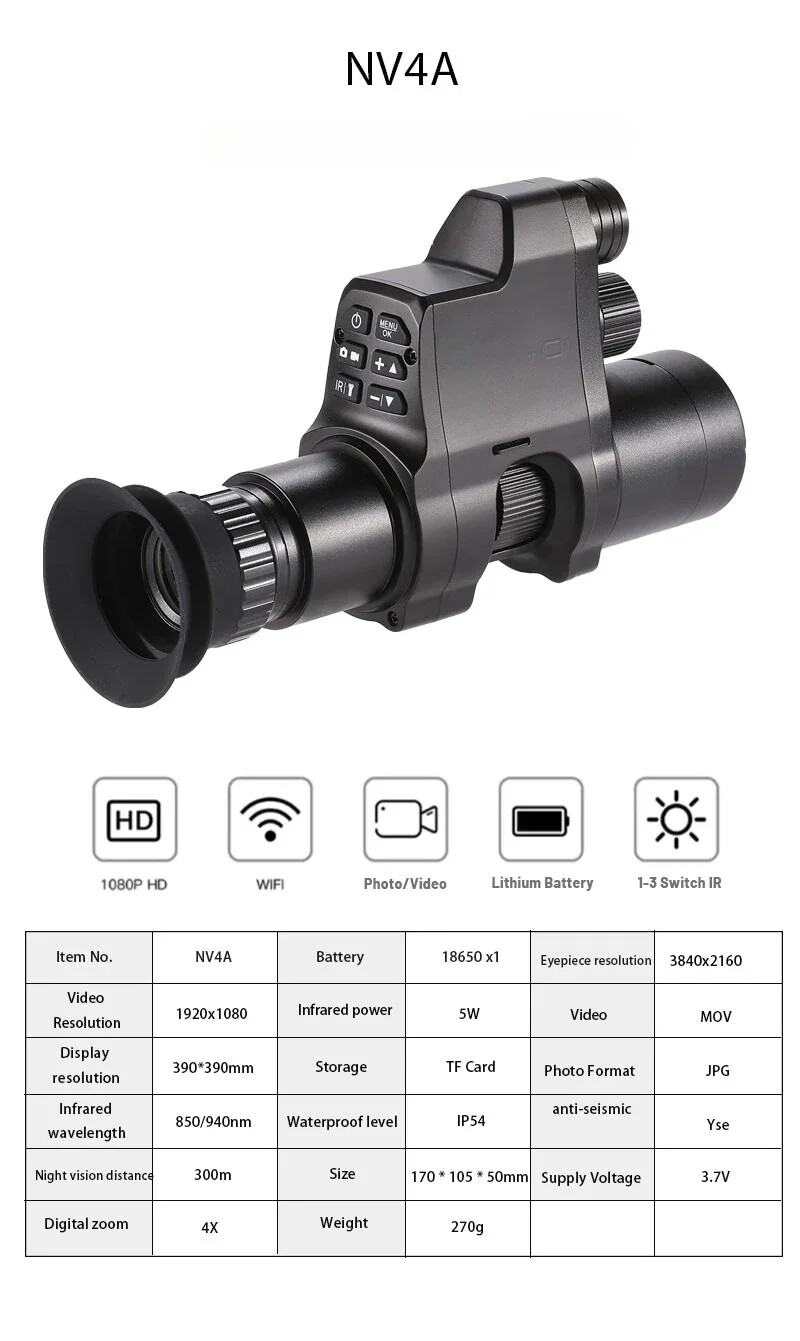 Night Vision Monocular 4X Zoom High Definition Video Camera Device Crosshair