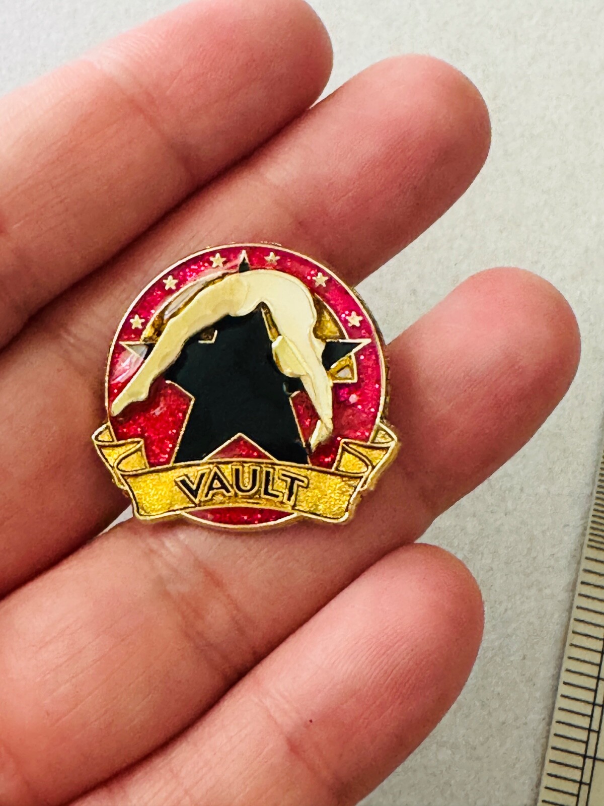 NEW Crown GLITTER Gymnastics Lapel Pin VAULT Pink
