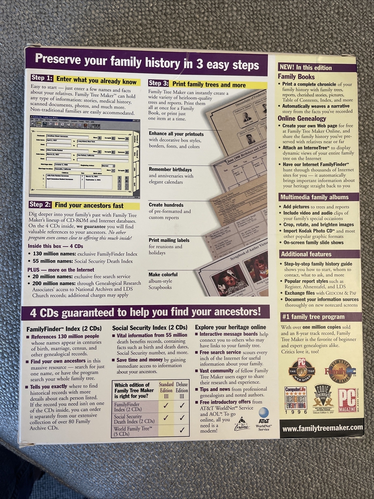 как выглядит Broderbund Family Tree Maker Standard Edition III - Windows 95 /3.1 - 4 CD-ROMS фото