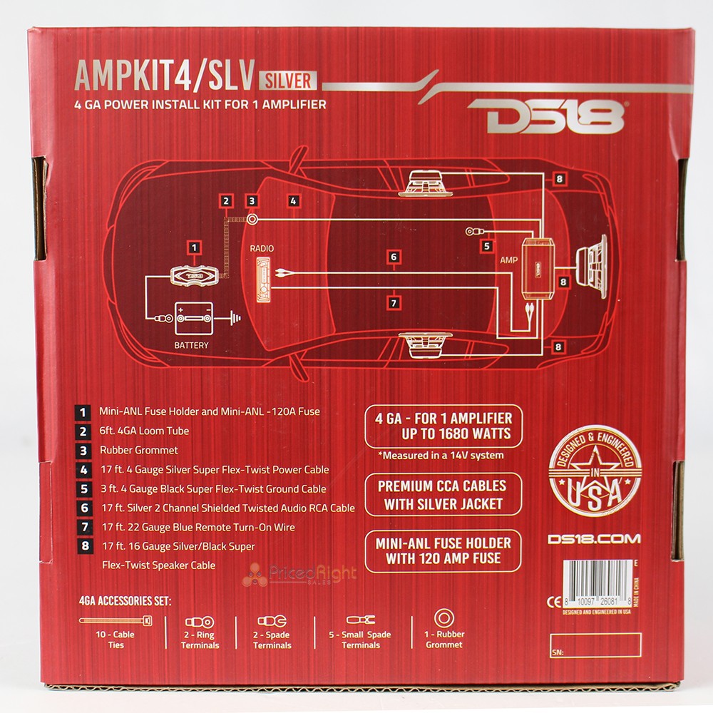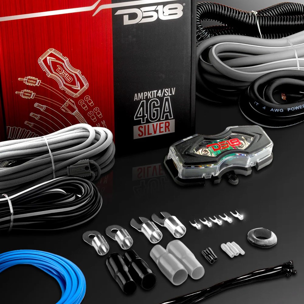 DS18 4 Gauge Amp Kit Wiring Amplifier Complete Install Cables AMPKIT4/SLV CCA