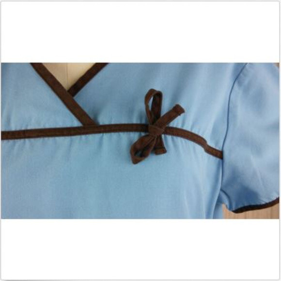 как выглядит Sky Blue Ribbon Ringer Scrunch Scrub Top Women