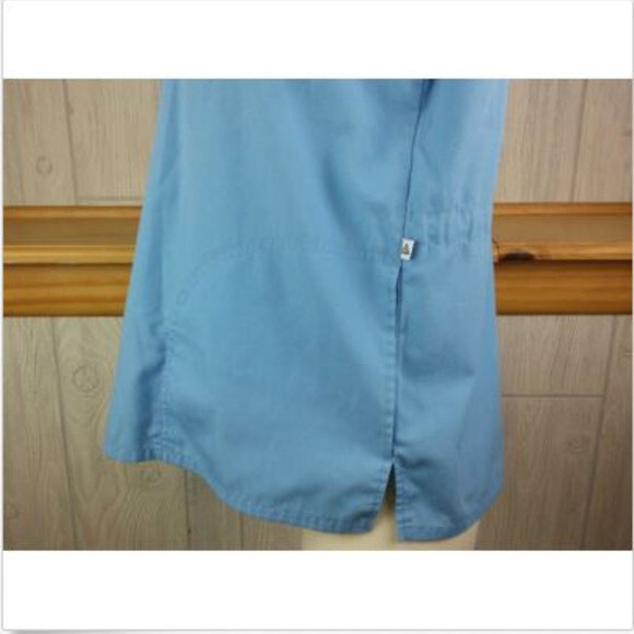 как выглядит Sky Blue Ribbon Ringer Scrunch Scrub Top Womens S Short Sleeve Cherokee фото