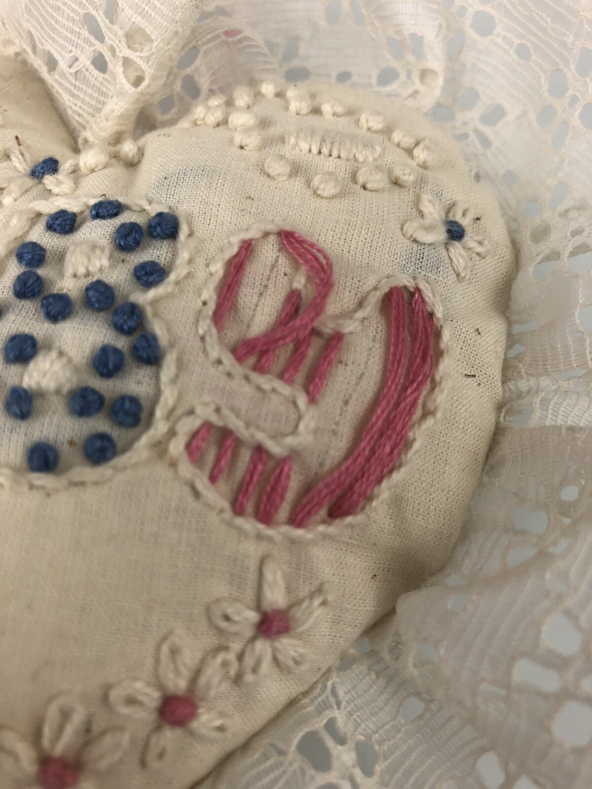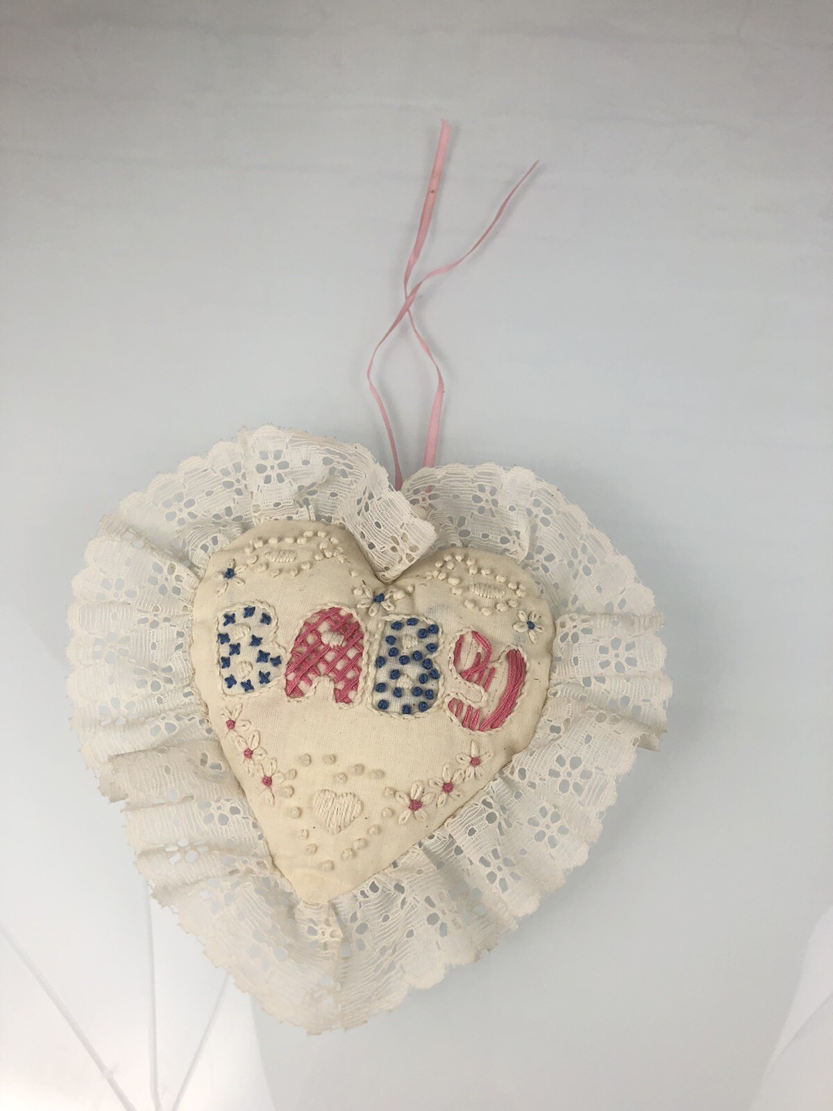 Handmade Heart Cross Stitch Door Hanger Baby Nursery Lacy Cute Vintage
