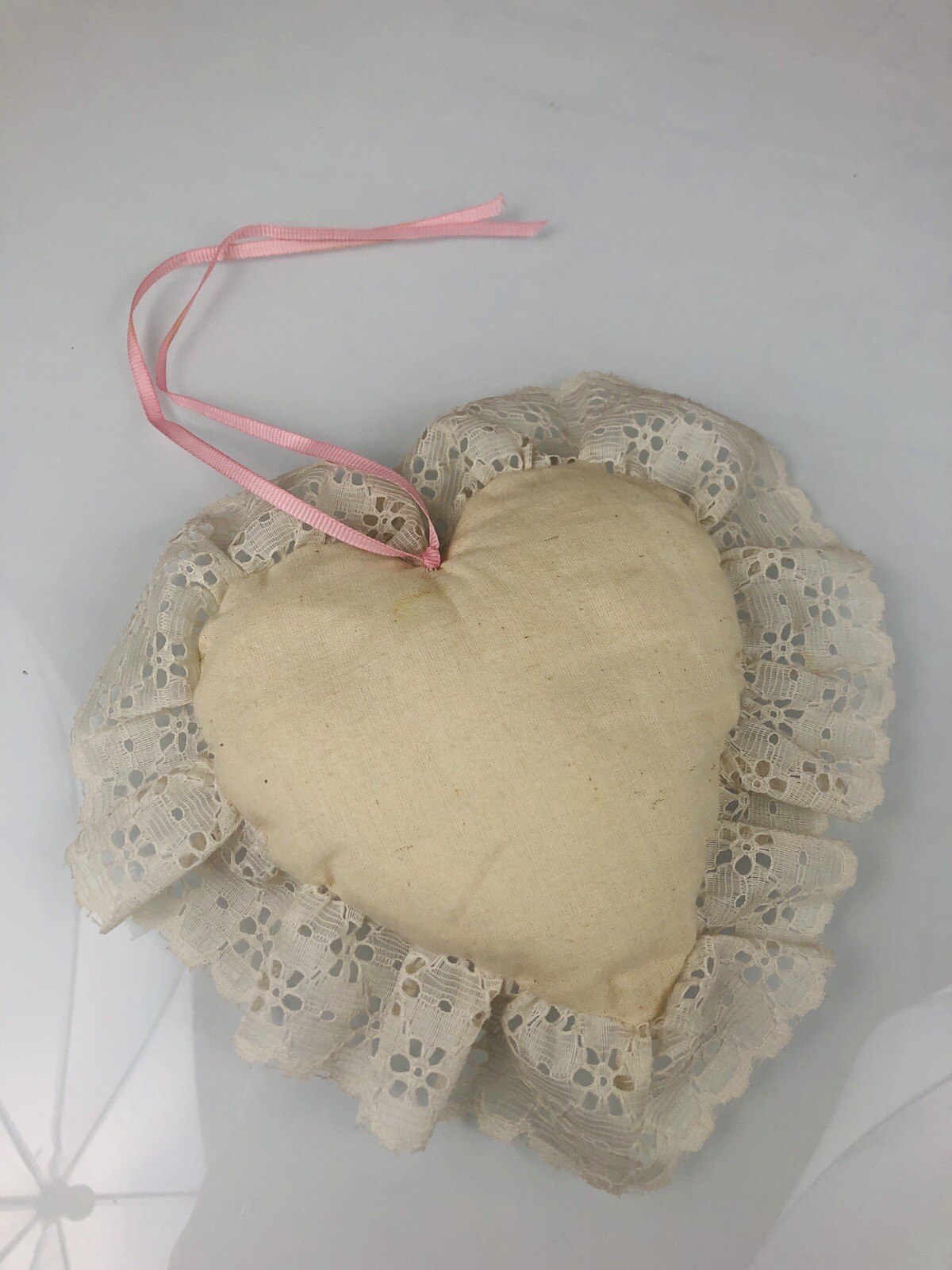 как выглядит Handmade Heart Cross Stitch Door Hanger Baby Nursery Lacy Cute Vintage фото