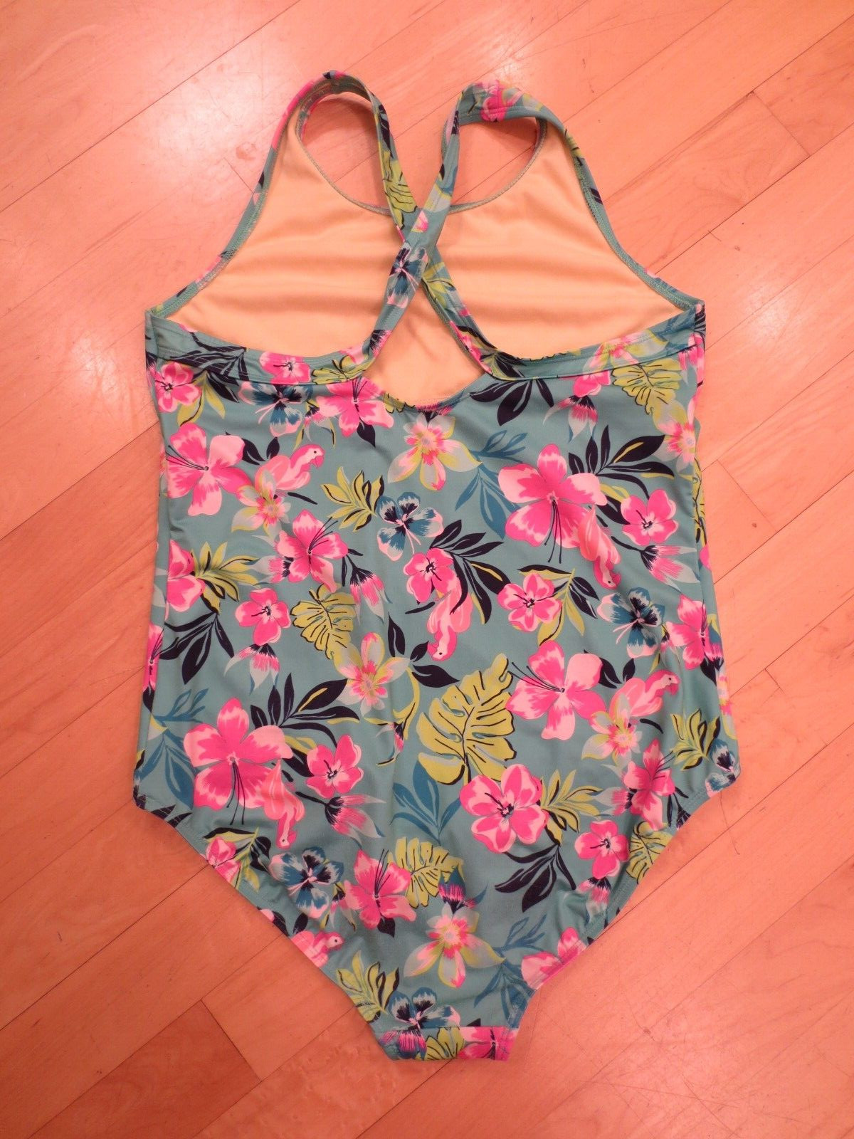 Size 14 Lands' End Girls One Piece Swimsuit Bathing Suit Floral Flowers Lined