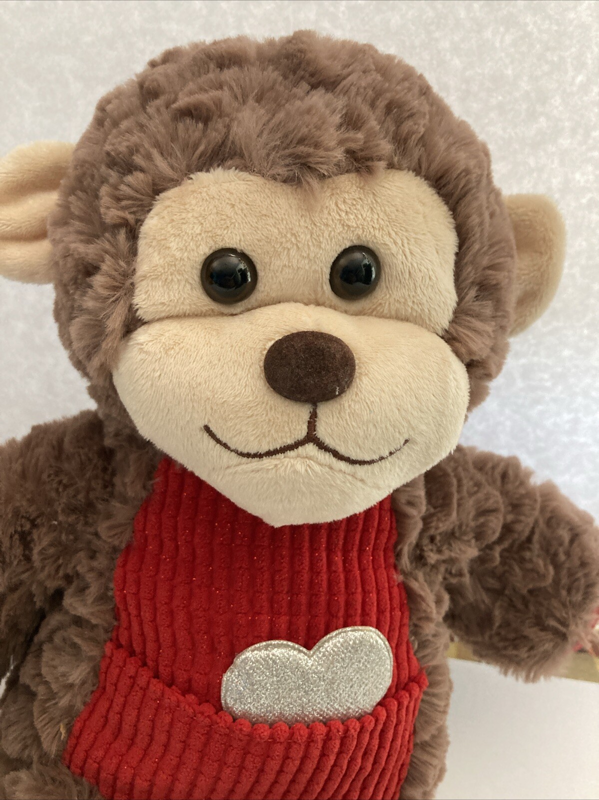 Dan Dee Monkey Valentines Day Plush Stuffed Animal 14 Brown Heart Pocket Ribbed