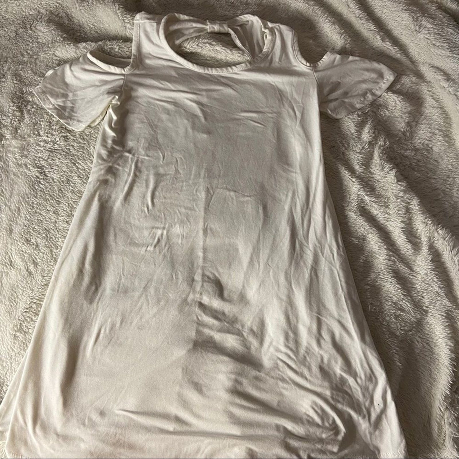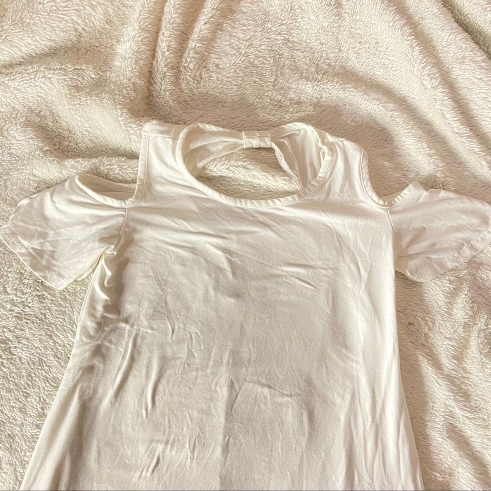 как выглядит Btwn Girls Cold Shoulder open cut white Dress фото