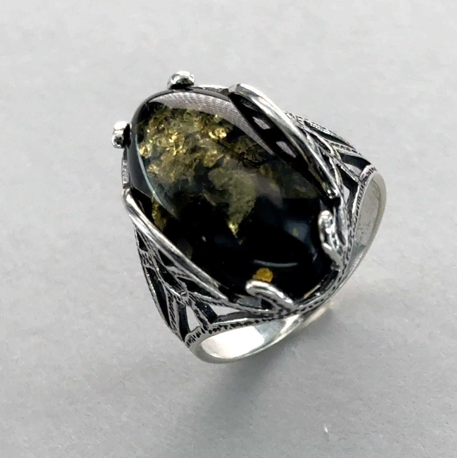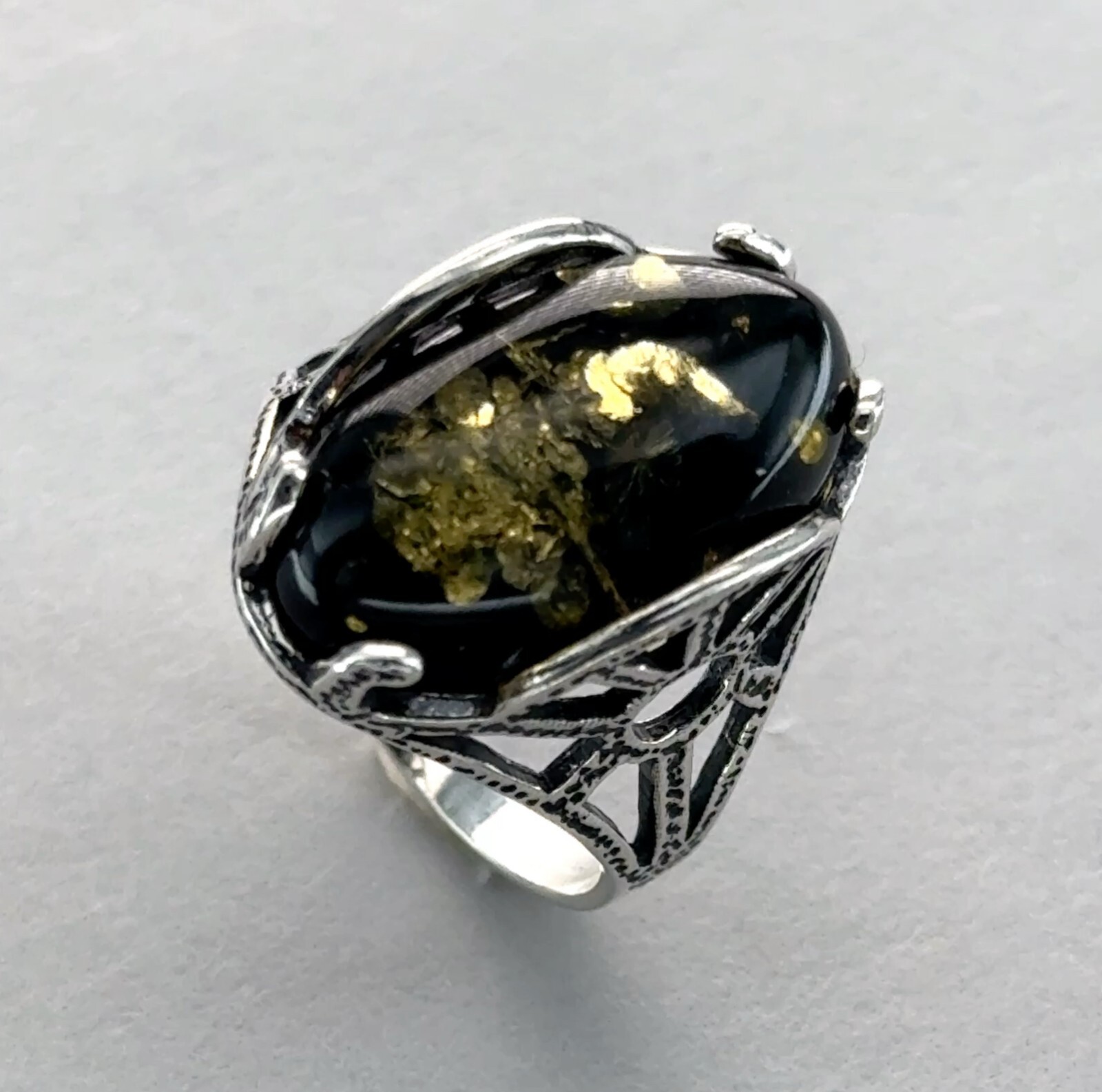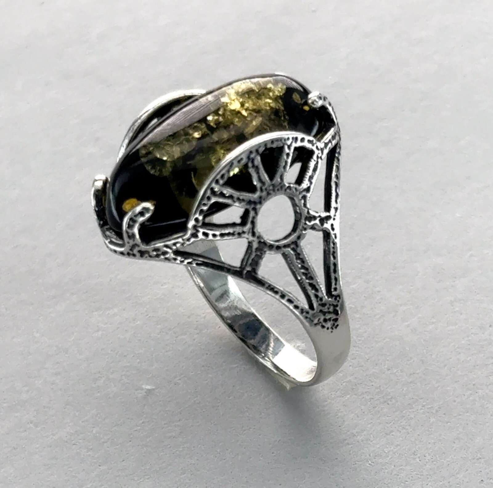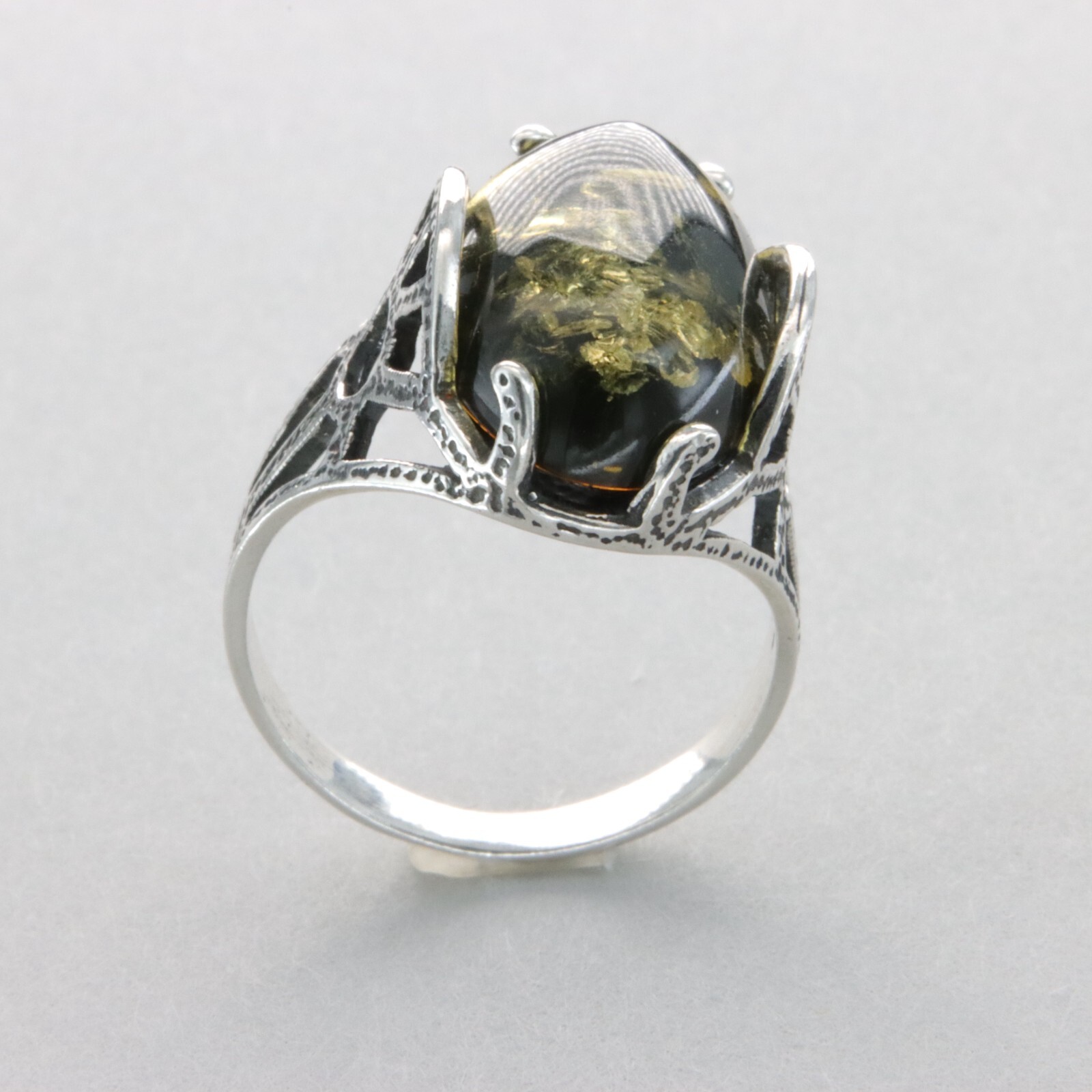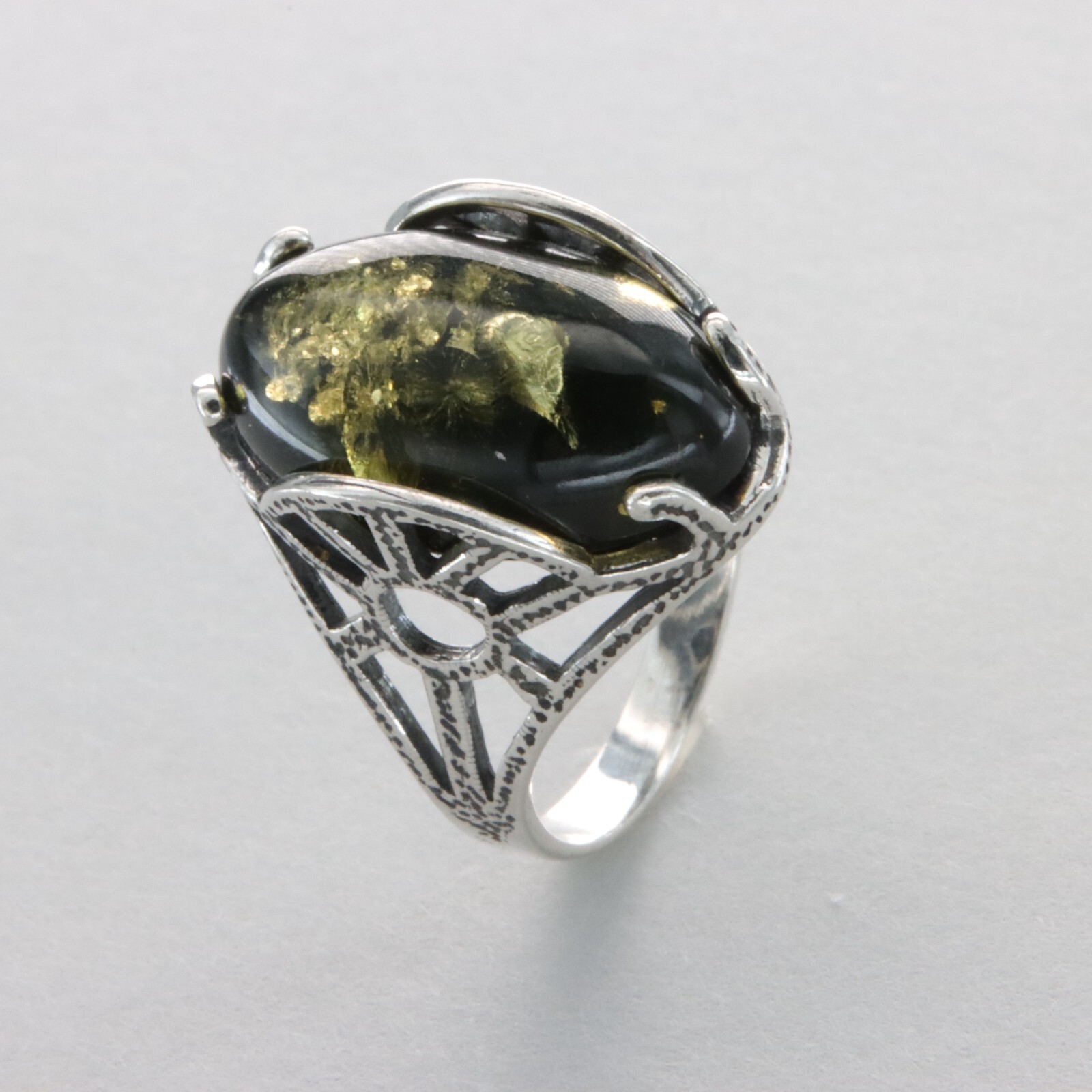 как выглядит Oval Green BALTIC AMBER "Antique Look" Ring 925 STERLING SILVER Poland 14e фото