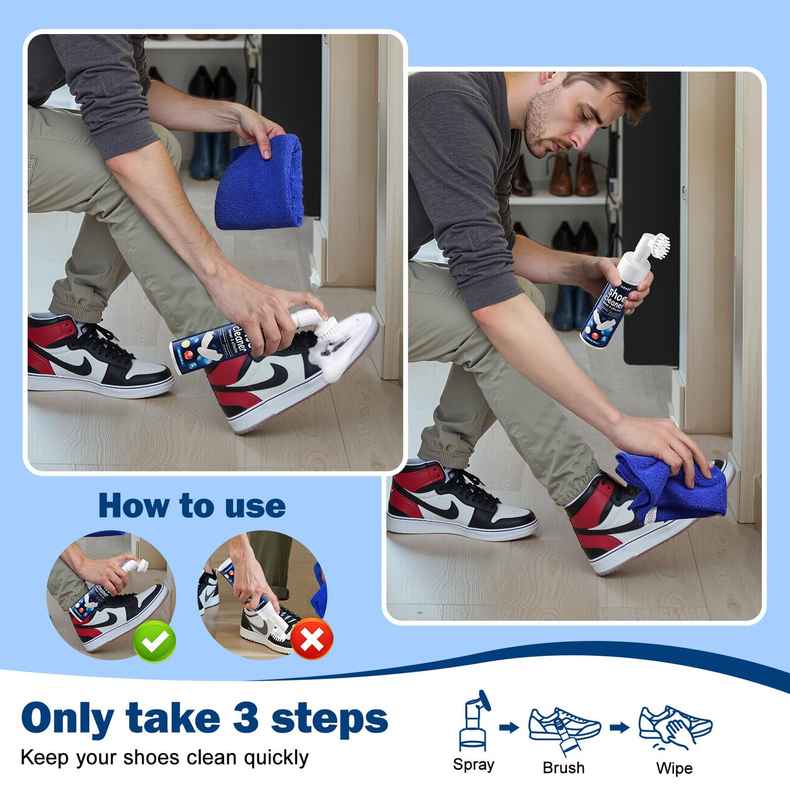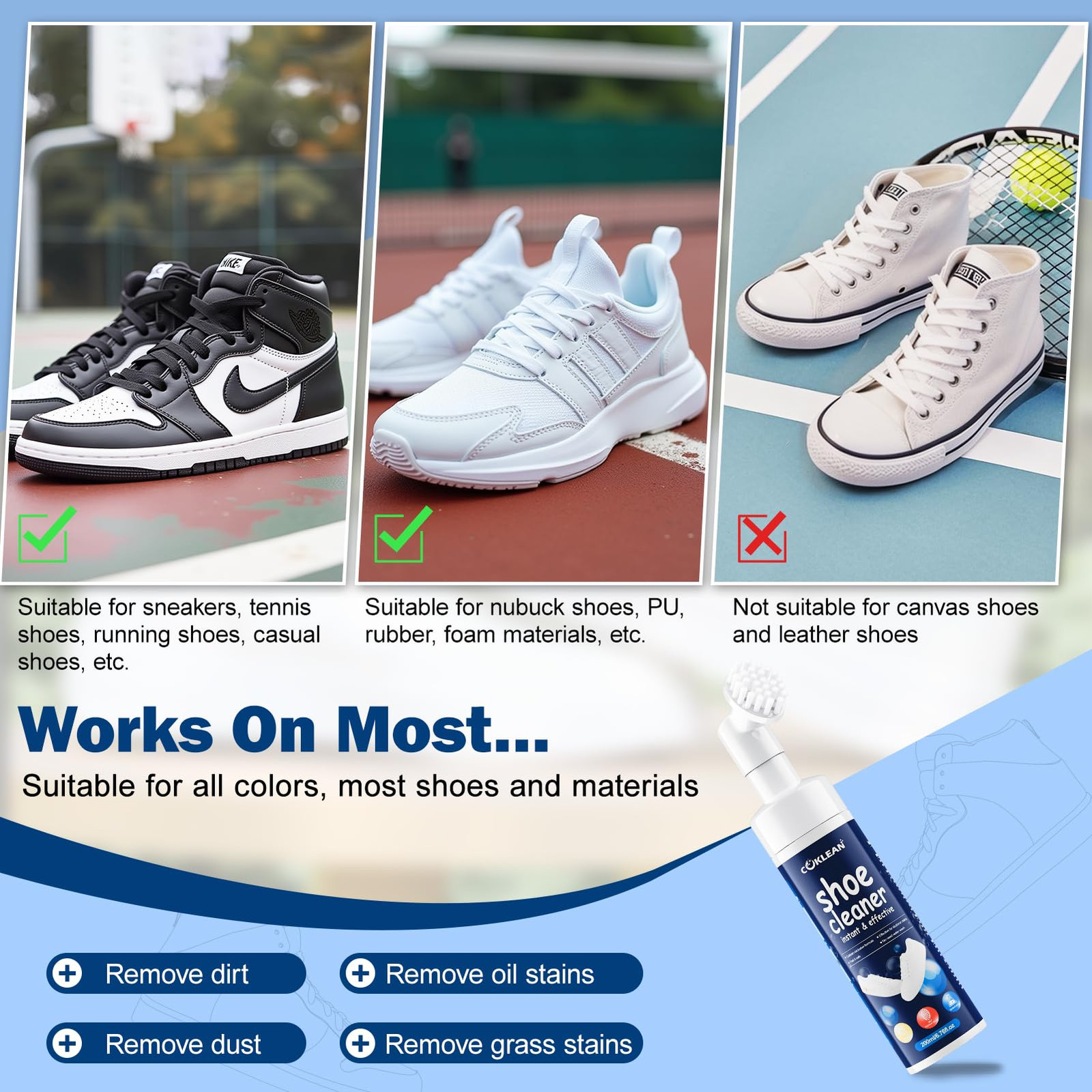 как выглядит Water-free Sneaker Cleaner, White Shoe Cleaner Kit 6.76 OZ Foam for Tennis Sh... фото