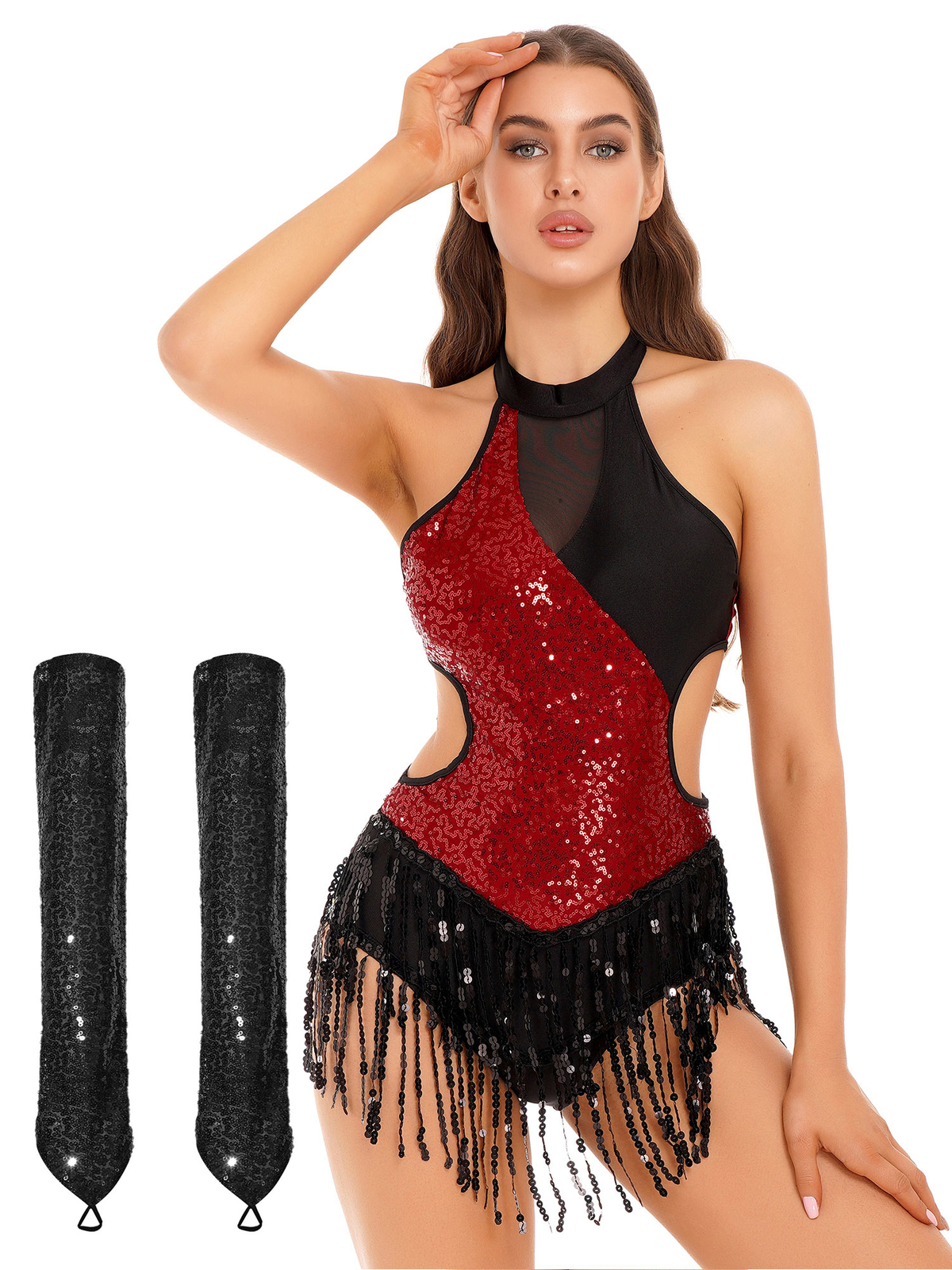 как выглядит Women Outfits Rumba Leotards Tassel Costumes Sequin 2Pcs Gymnastics Bodysuit фото