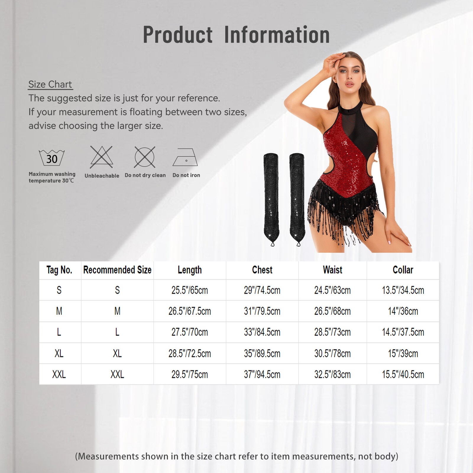 как выглядит Women Outfits Rumba Leotards Tassel Costumes Sequin 2Pcs Gymnastics Bodysuit фото