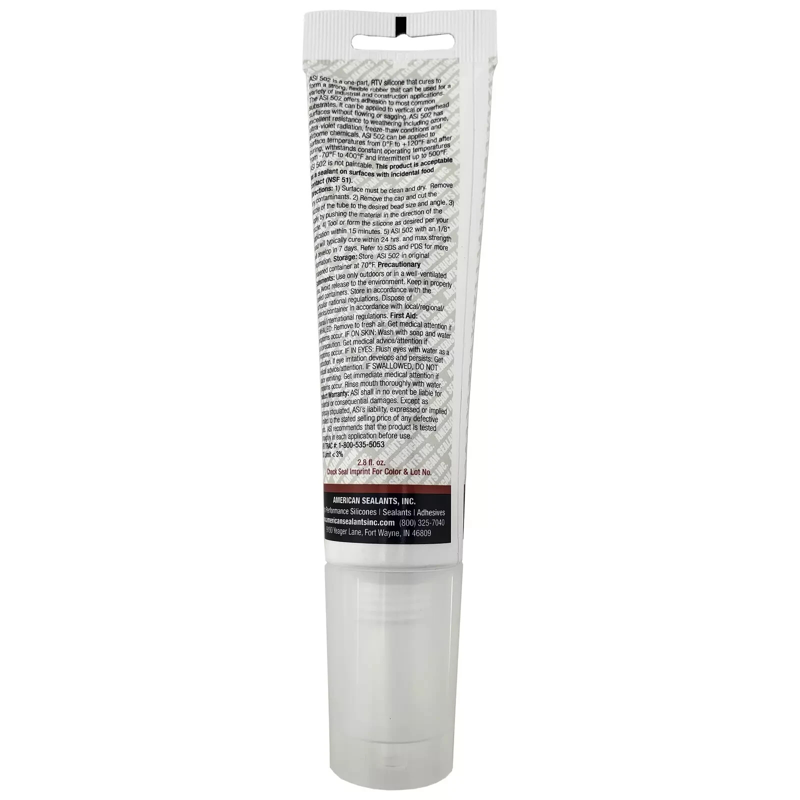 ASI 502 Clear Food Grade 100 RTV Silicone Sealant - 2.8 Oz Squeeze Tube