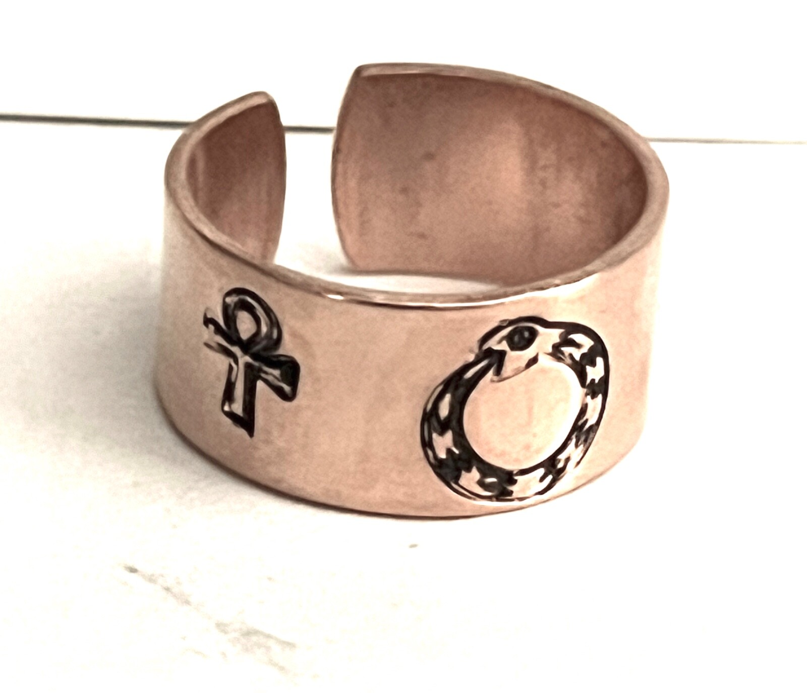 COPPER OPEN BACKED DESIGNED STAMPED RING EGYPTIAN SYMBOLS CR-284
