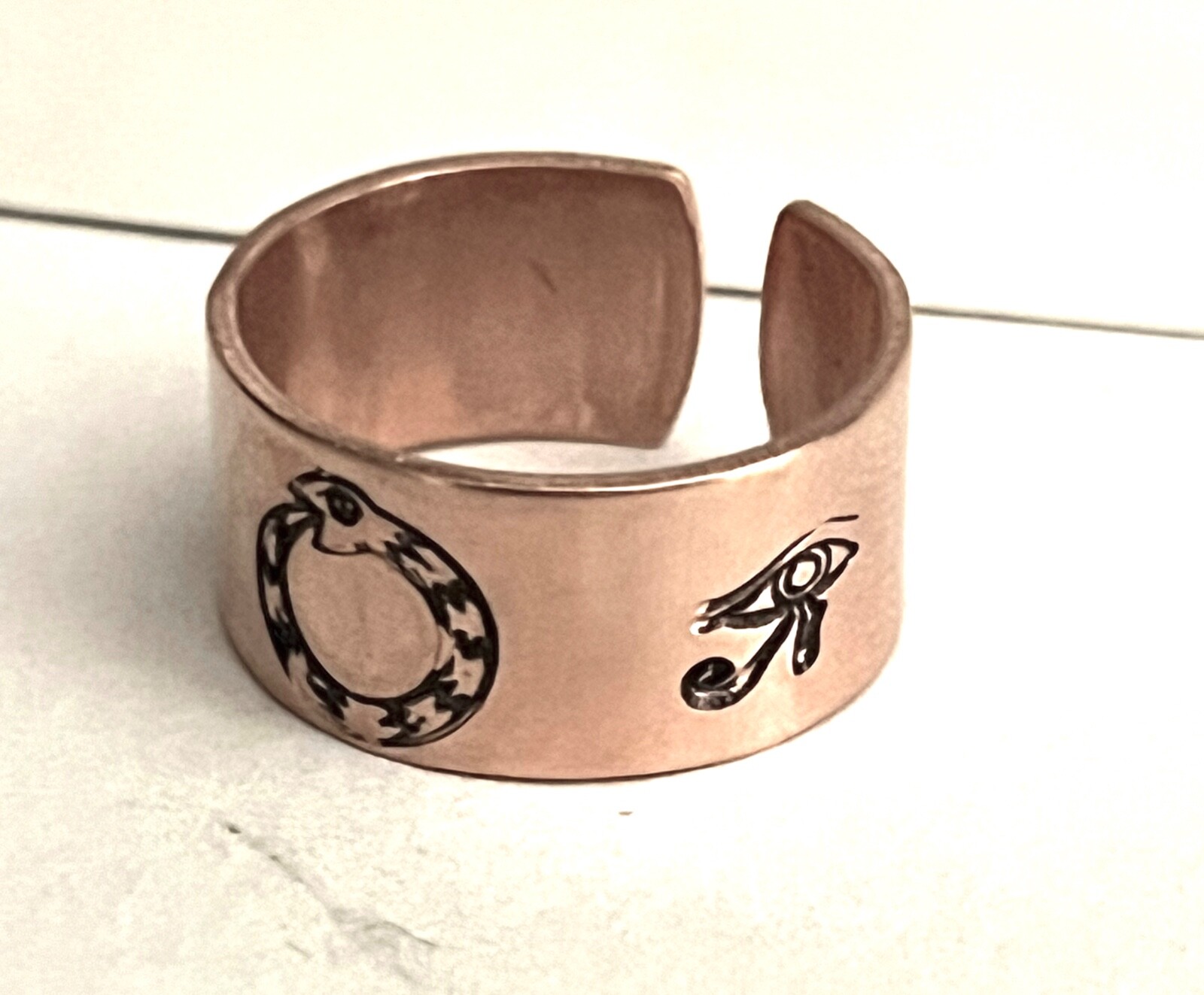 как выглядит COPPER OPEN BACKED DESIGNED STAMPED RING EGYPTIAN SYMBOLS CR-284 фото