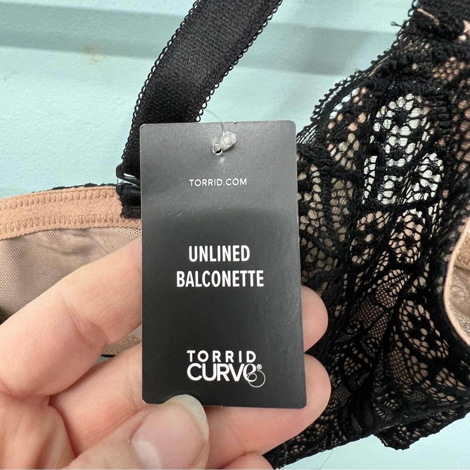 как выглядит NWT Torrid Curvy Unlined Elegant Black Lace Bra Size 44DD фото