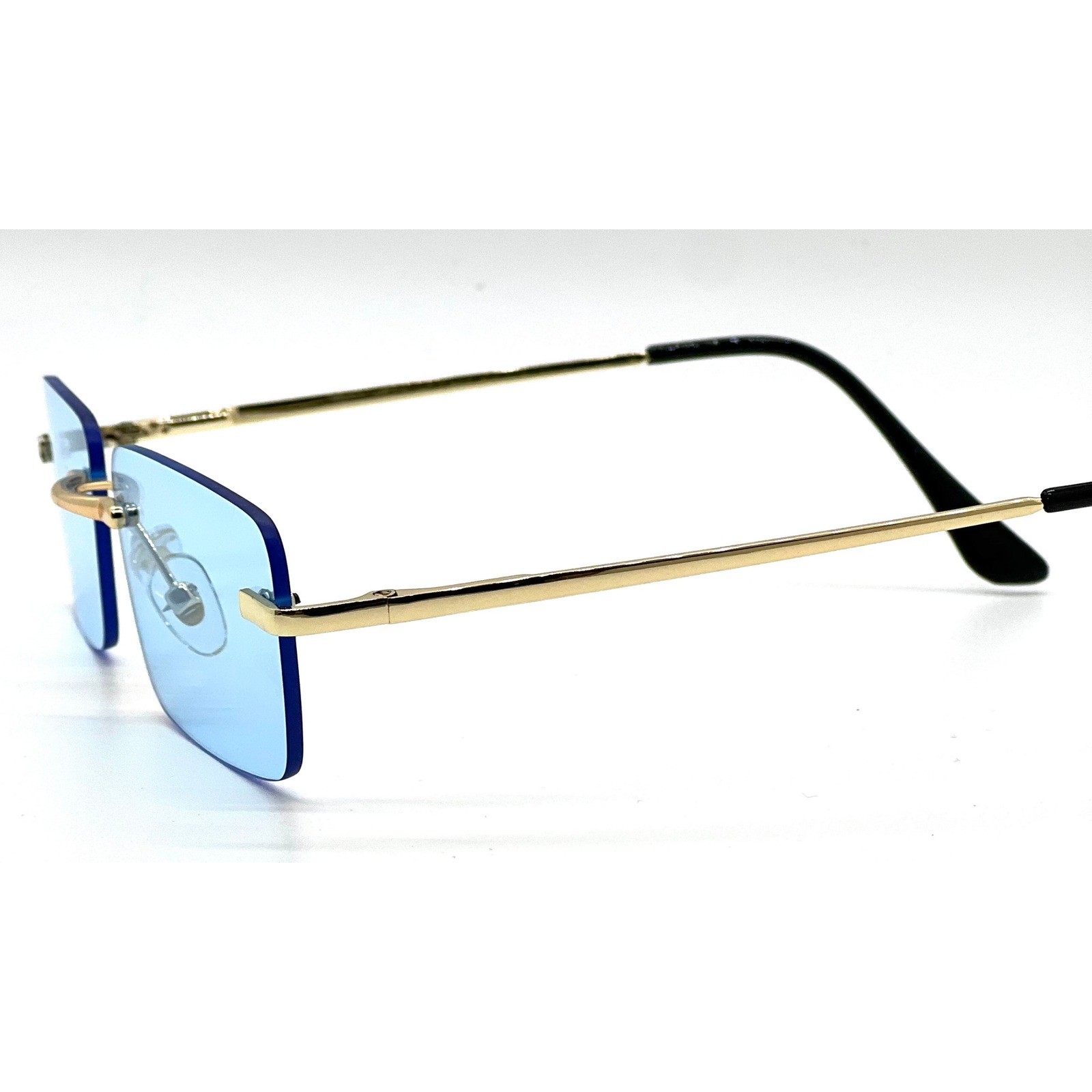 Rimless Sunglasses Men Rectangle Blue Lens Gold Frame Fashion Shades Hip Hop New
