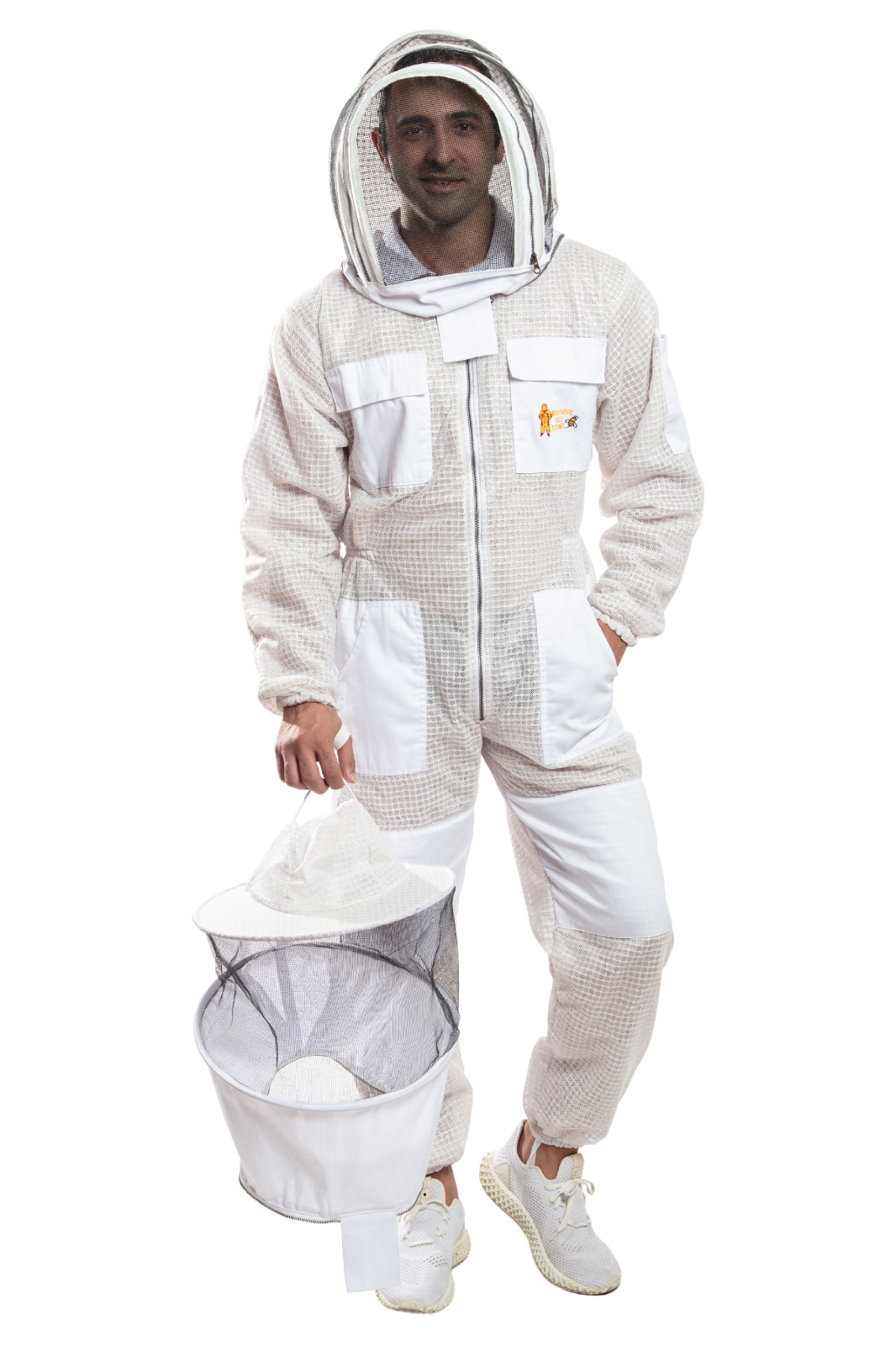 Three Layer Beekeeping Ventilated Suit with Round Fencing Veil in White