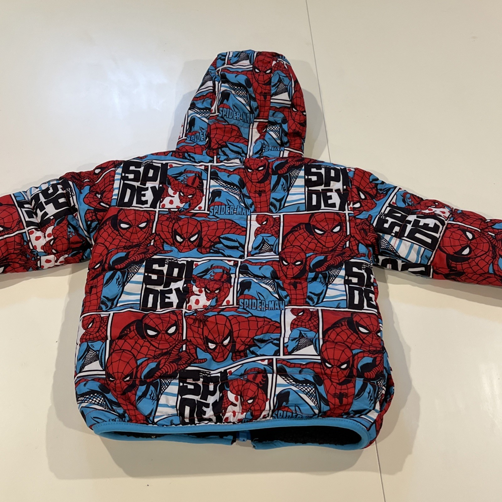 Marvel Boy's Reversable Quilted Fleece Hooded Jacket Coat Spider-Man NWT