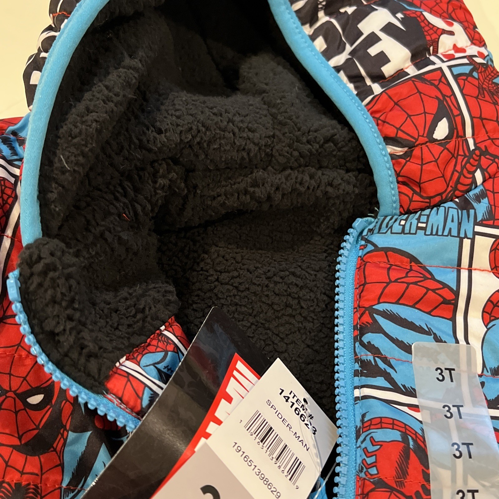 как выглядит Marvel Boys Reversable Quilted Fleece Hooded Jacket Coat Spider-Man NWT фото