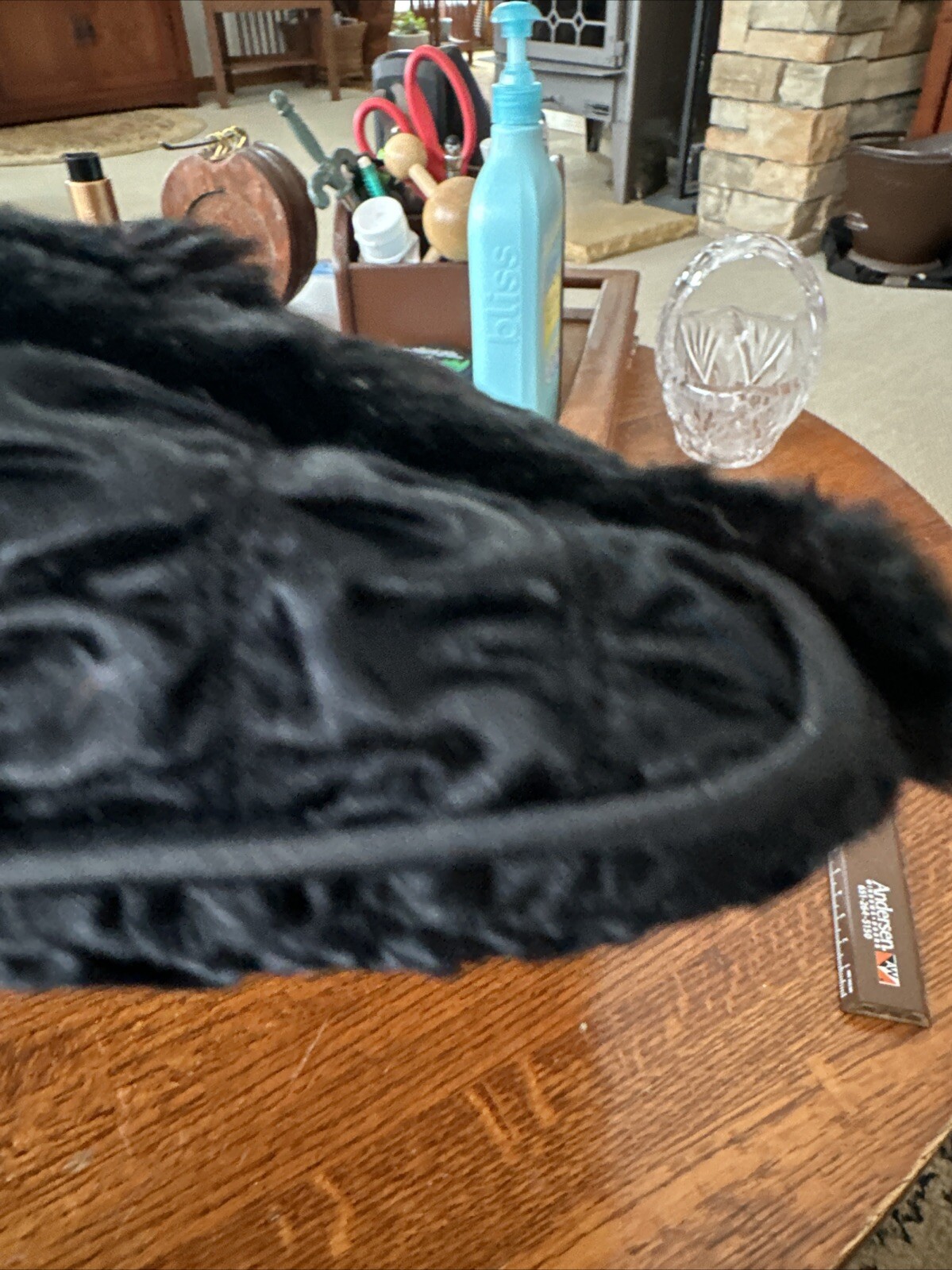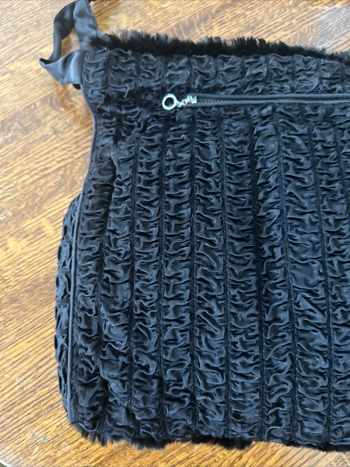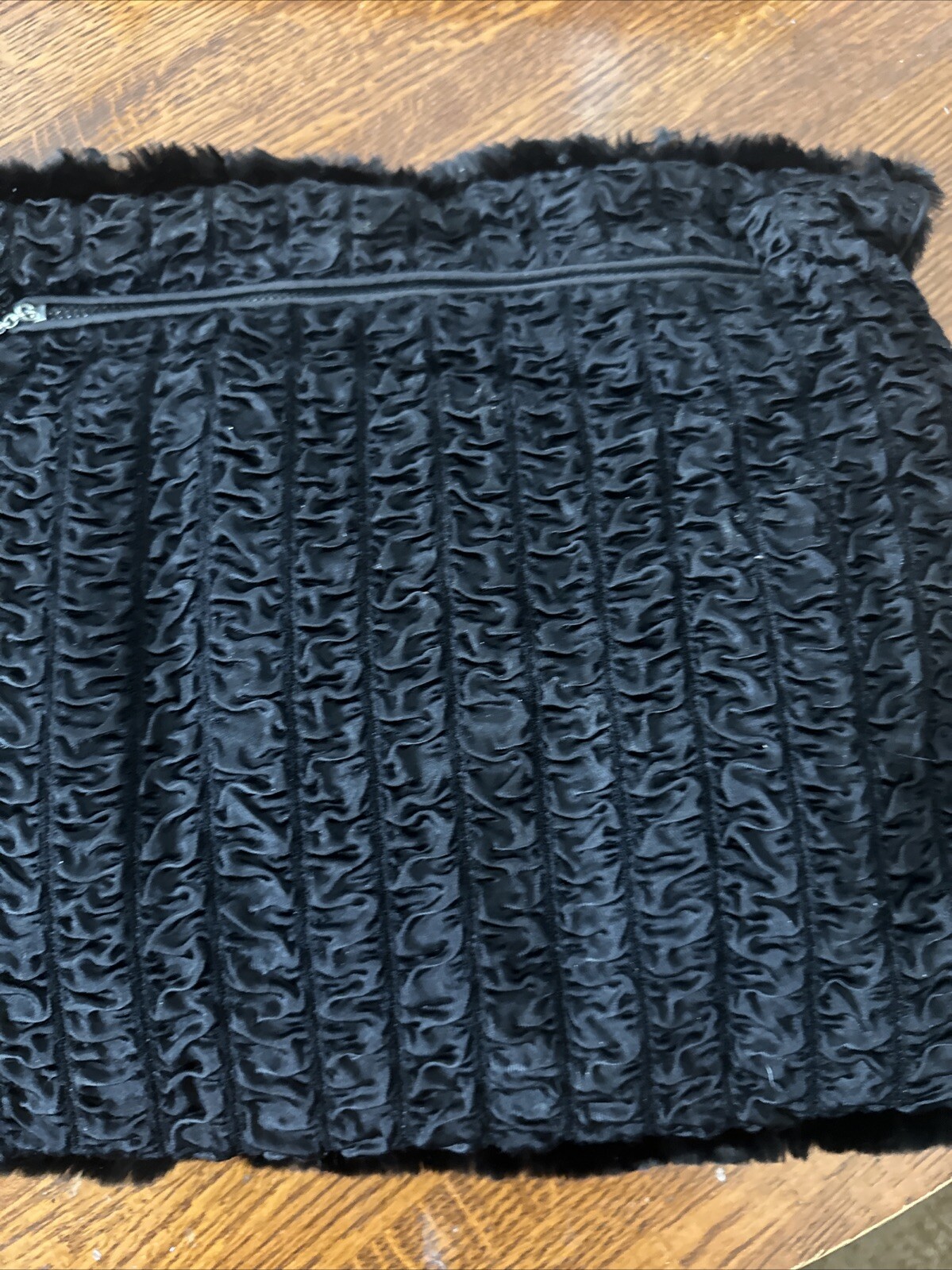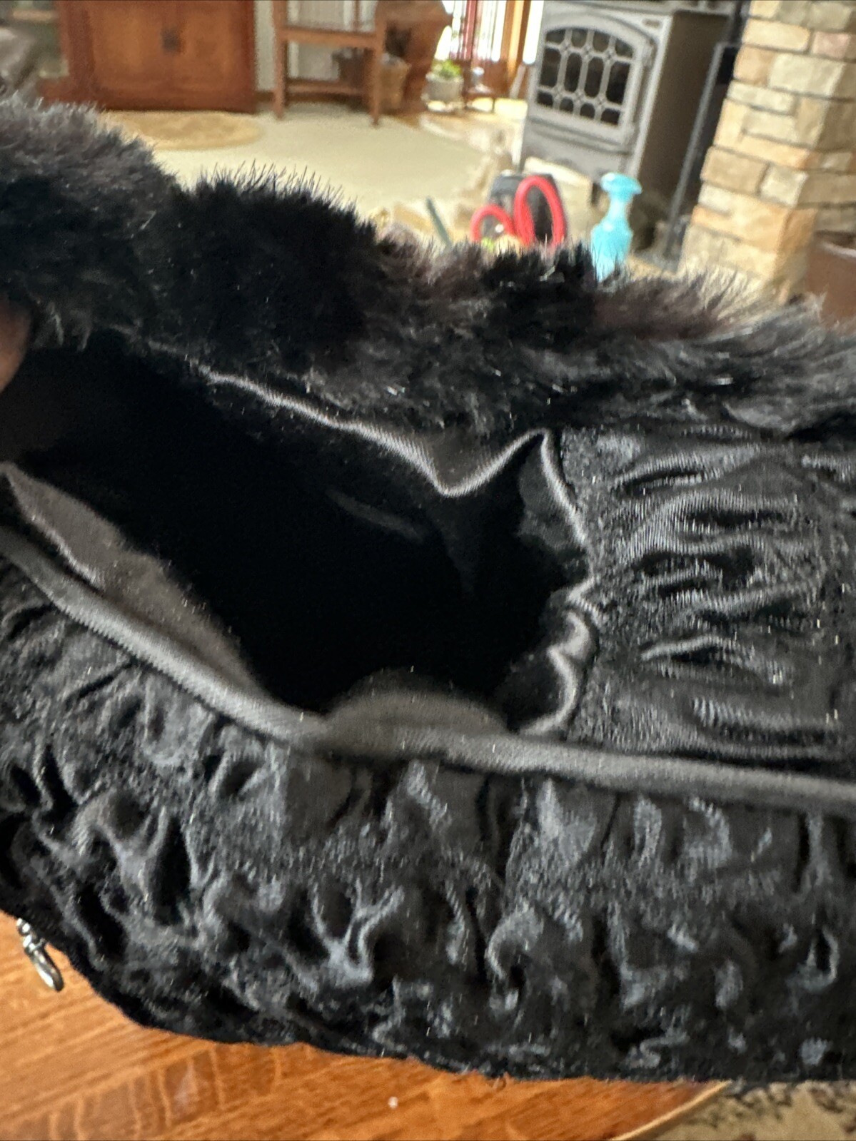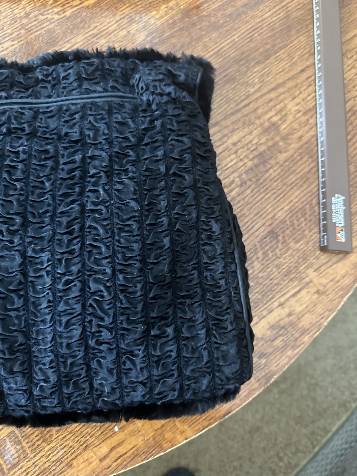 как выглядит Vtg Black Authentic Fur Muff Hand Warmer Purse W/ Wrist Handle Zippered Pocket фото