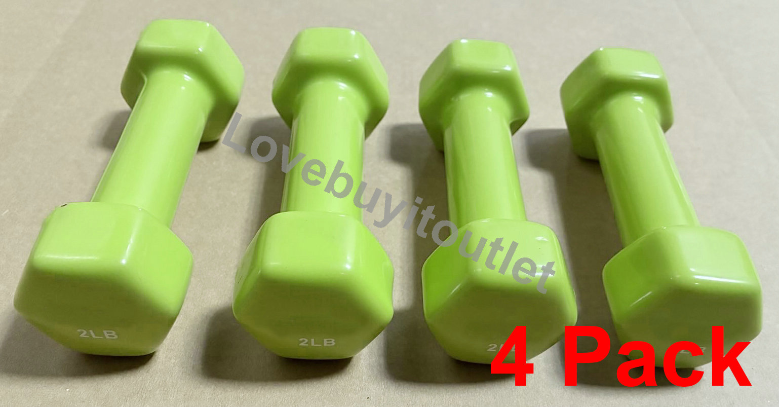 как выглядит 4 Pack Deluxe Green Comfortable Vinyl Coated Steel Dumbbells фото