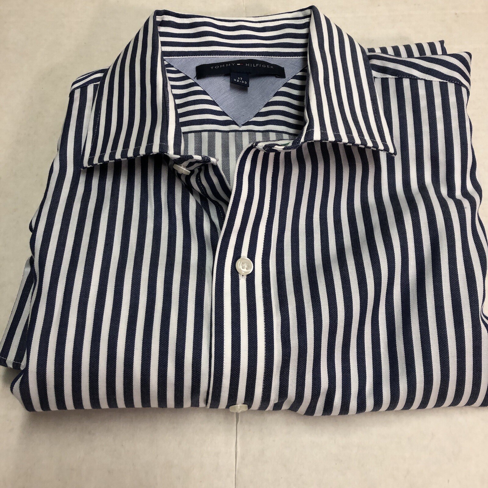 как выглядит Tommy Hilfiger Mens Blue Stripped Cotton Long Sleeve Button-Up Shirt Size Xl фото