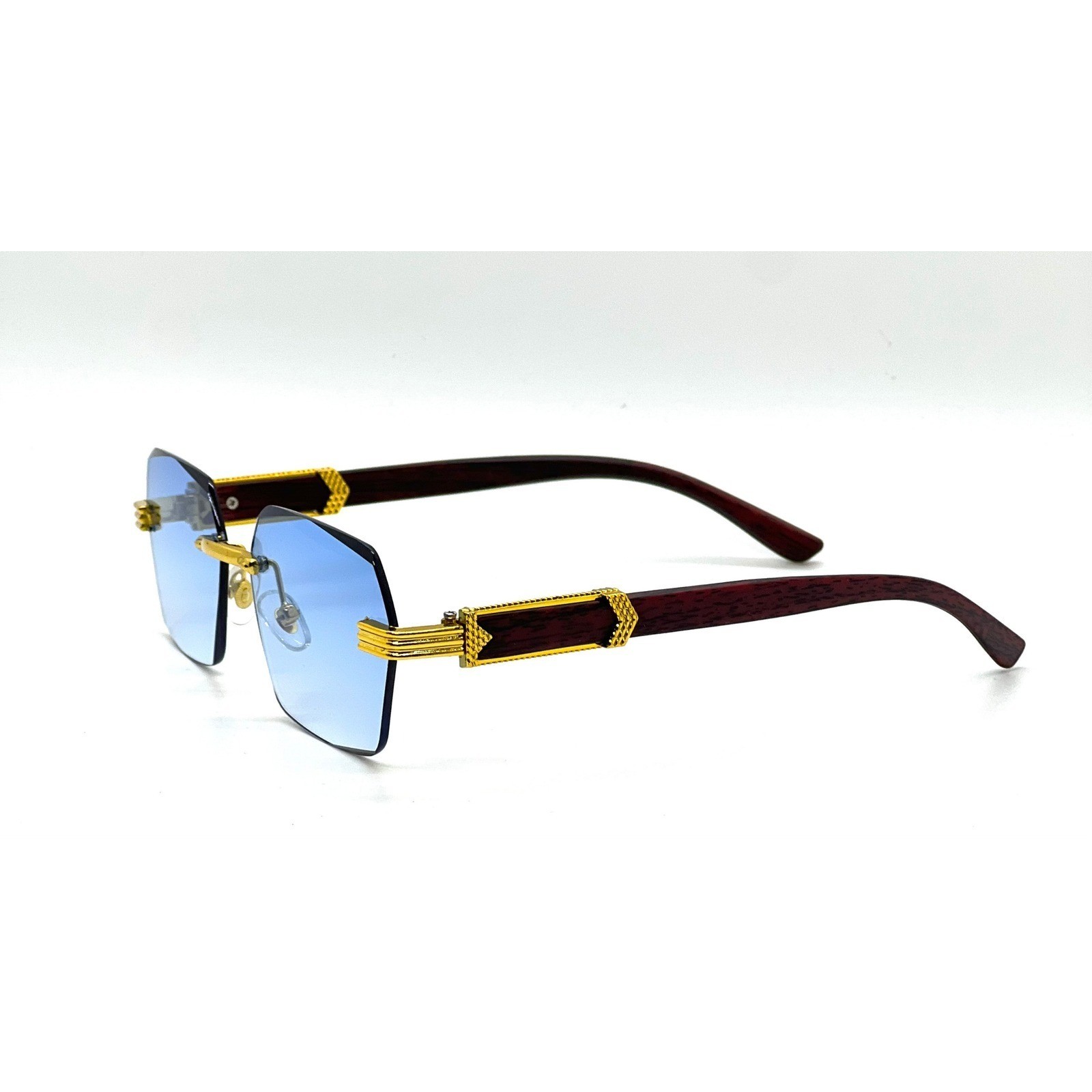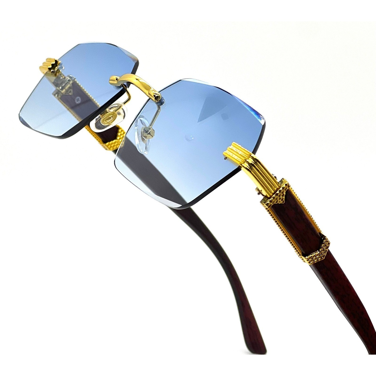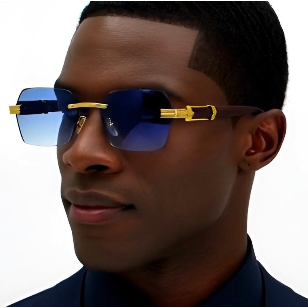 Rimless Sunglasses Men Designer Luxury Gold Frame Blue Lens Fashion Shades Gafas