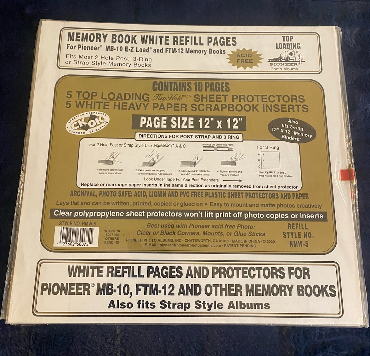 4 PACKS PIONEER MEMORY BOOK WHITE REFILL PAGES RMW-5 12x12 TOP LOADING