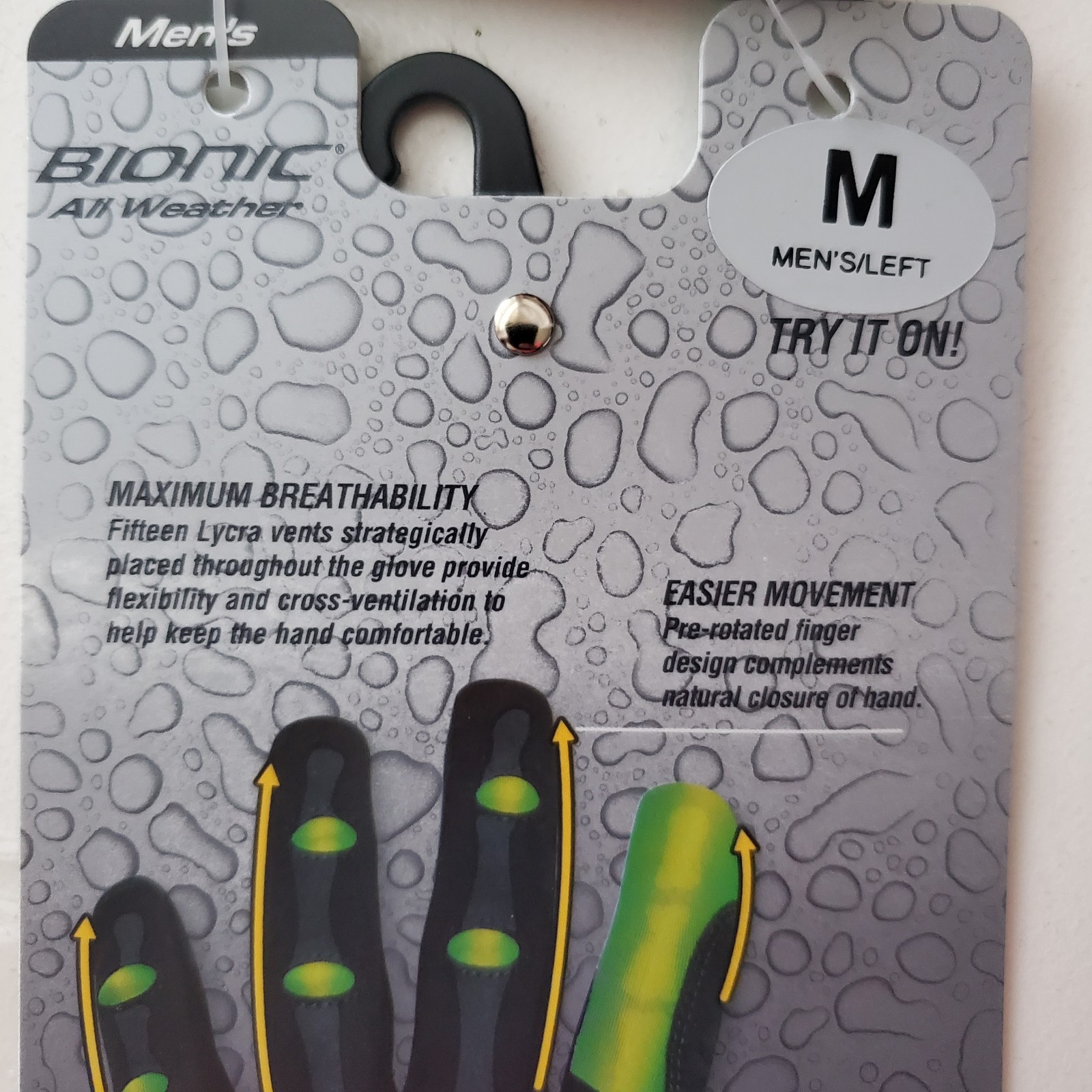 Bionic Men's All Weather Left Hand Black/Gray Golf Glove - NEW, Size M