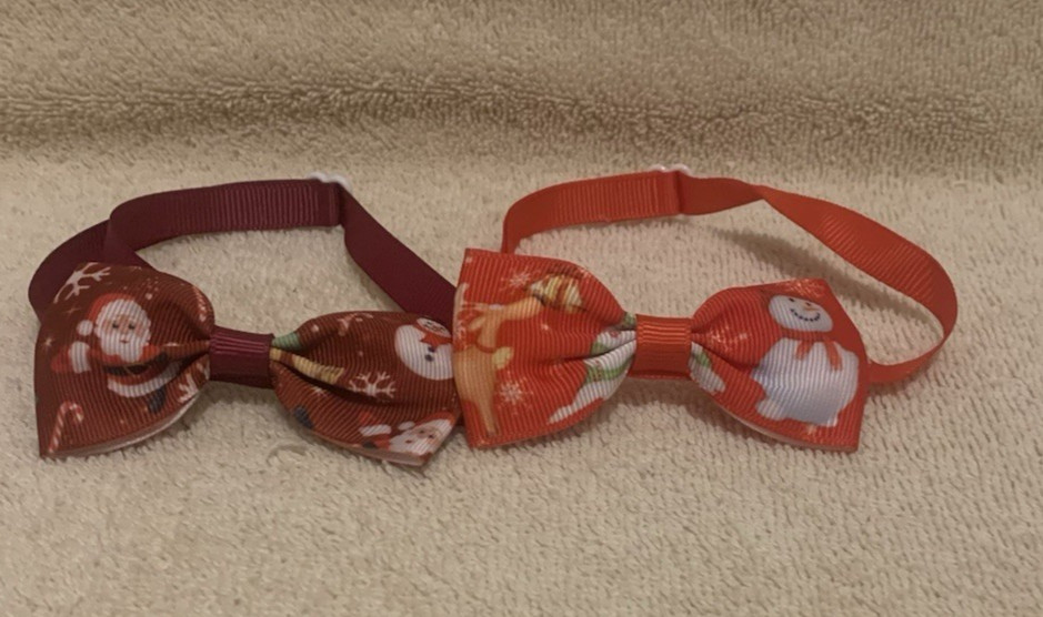 8 Pc Adjustable HOLIDAY CAT OR PUPPY Pet Neck Collars w/Bow Ties - EUC