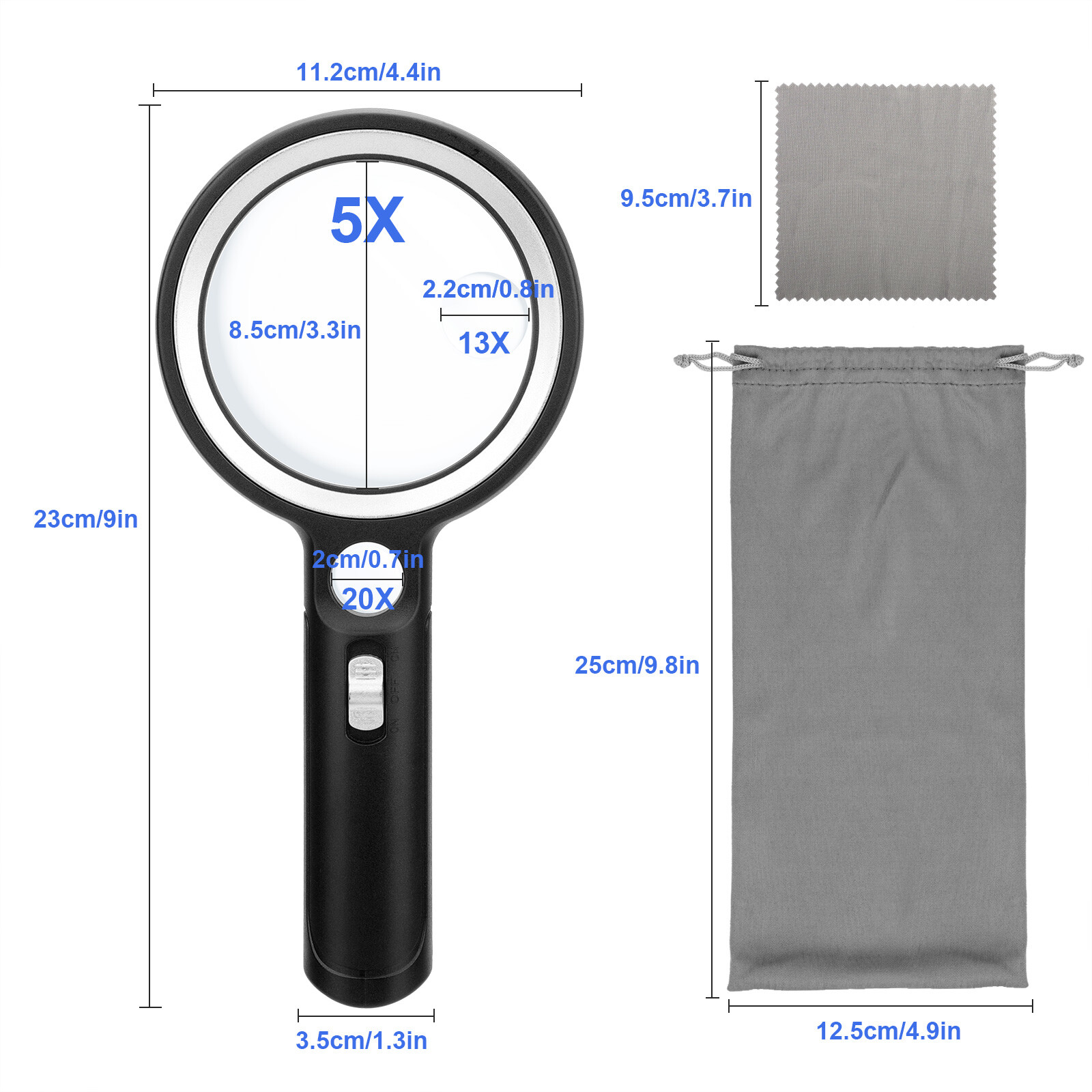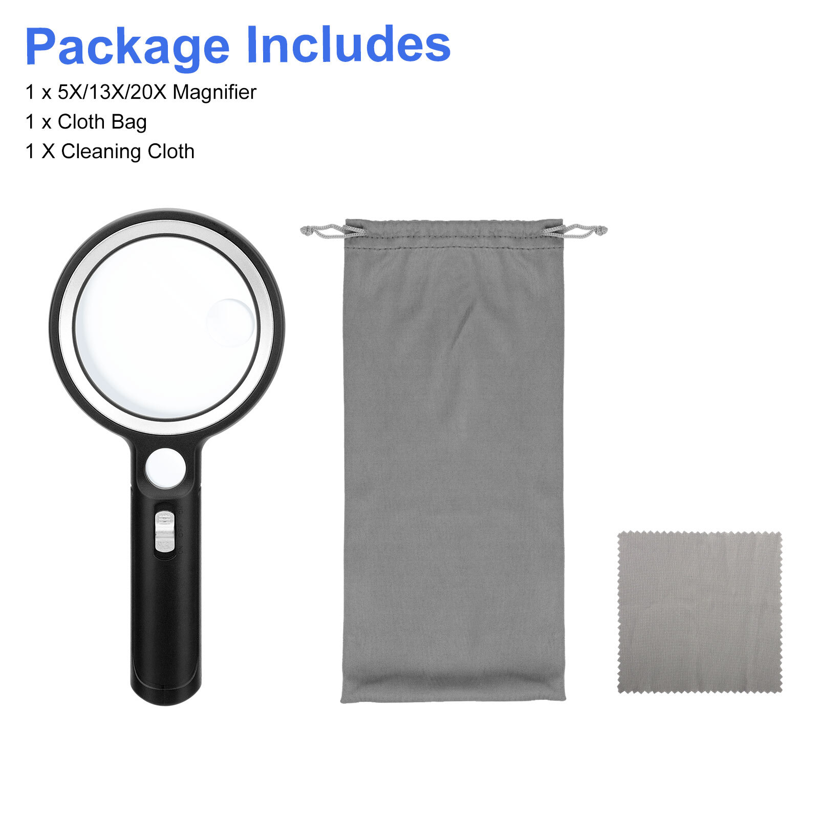 5X 13X 20X Handheld Magnifying Glass with 30 LED Lights and 1 UV Light